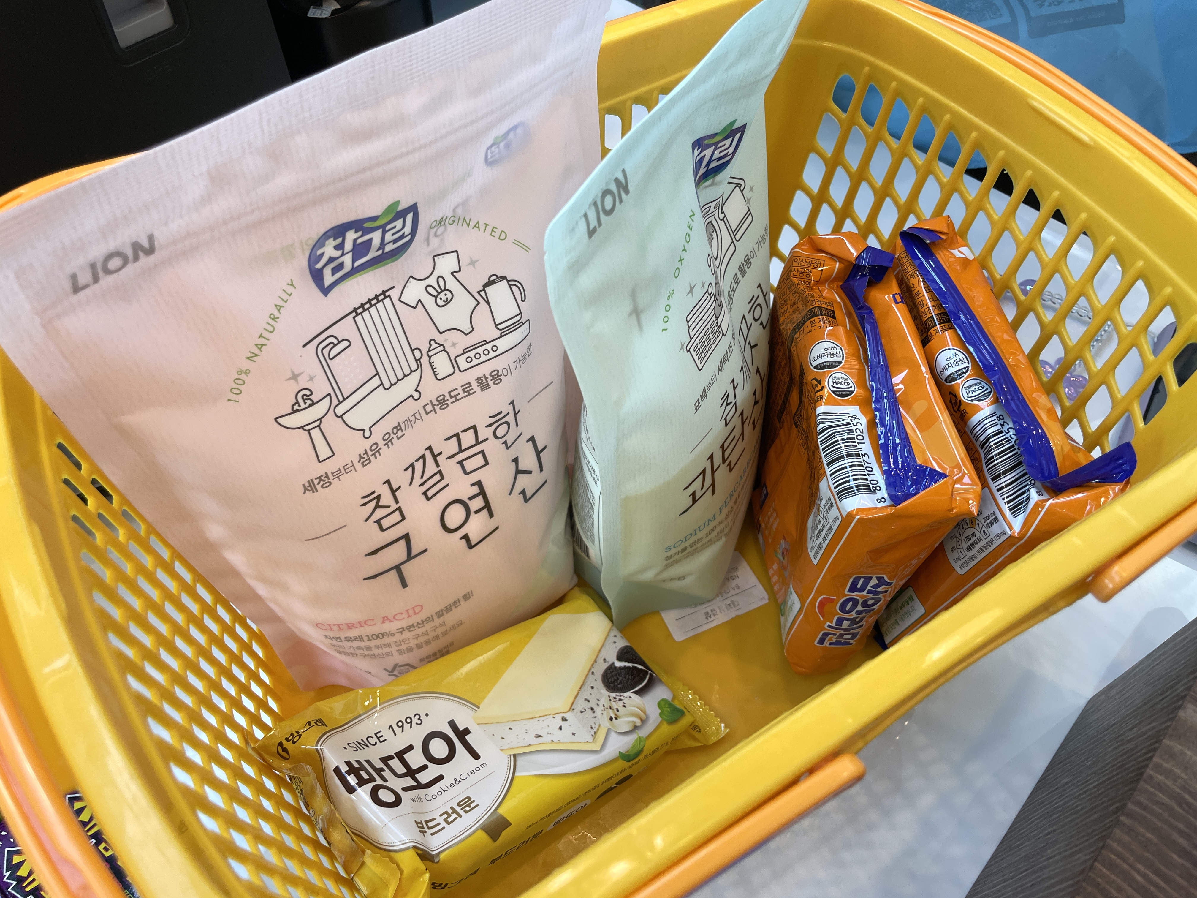 여하튼 그렇게 '구연산'과 '과탄산소다'만 사들고 나오는데, 뭔가 아쉬워서 '빵또아' 하나를 사서 먹었다. ( 삼양라면 2개도 )