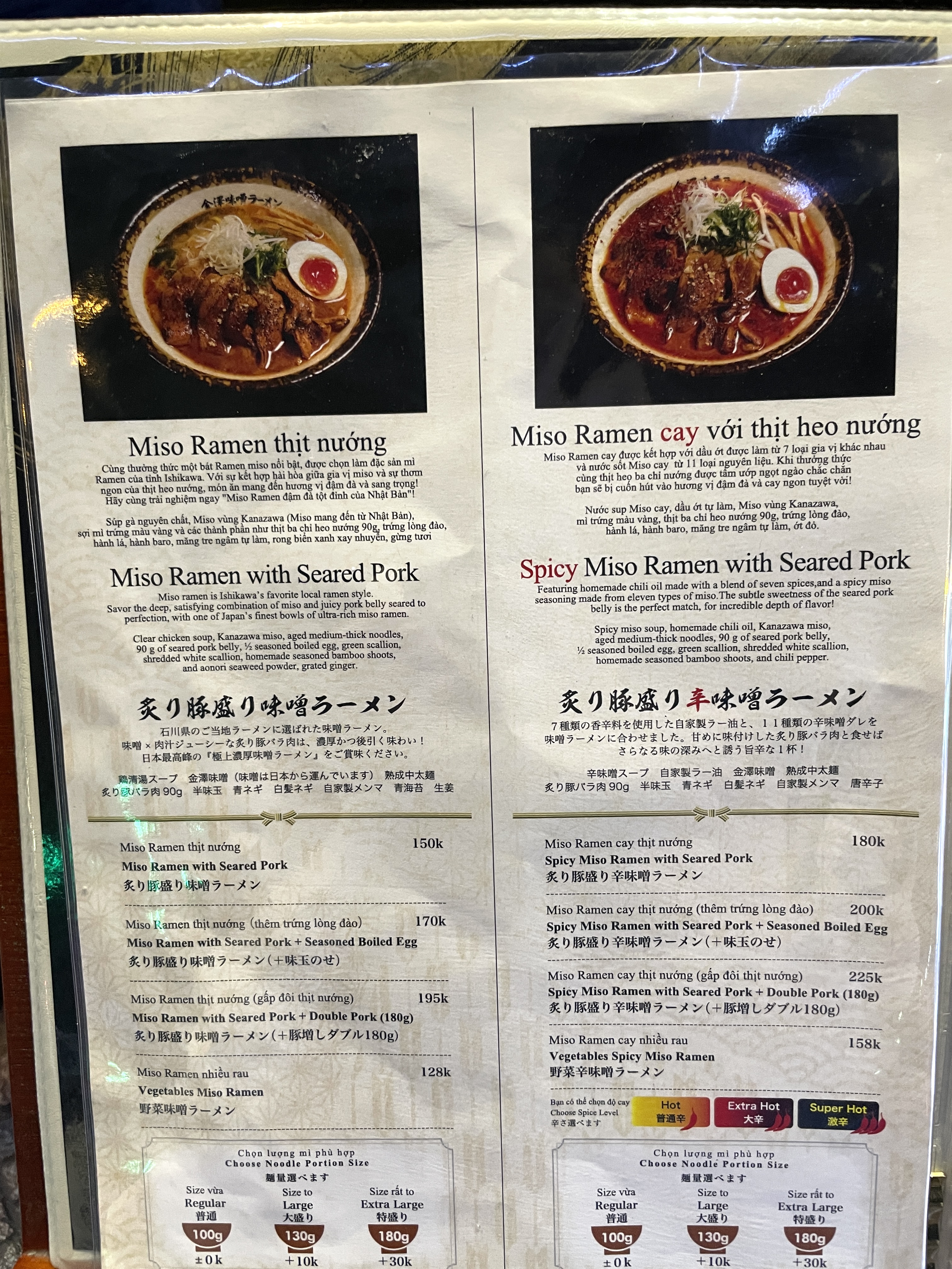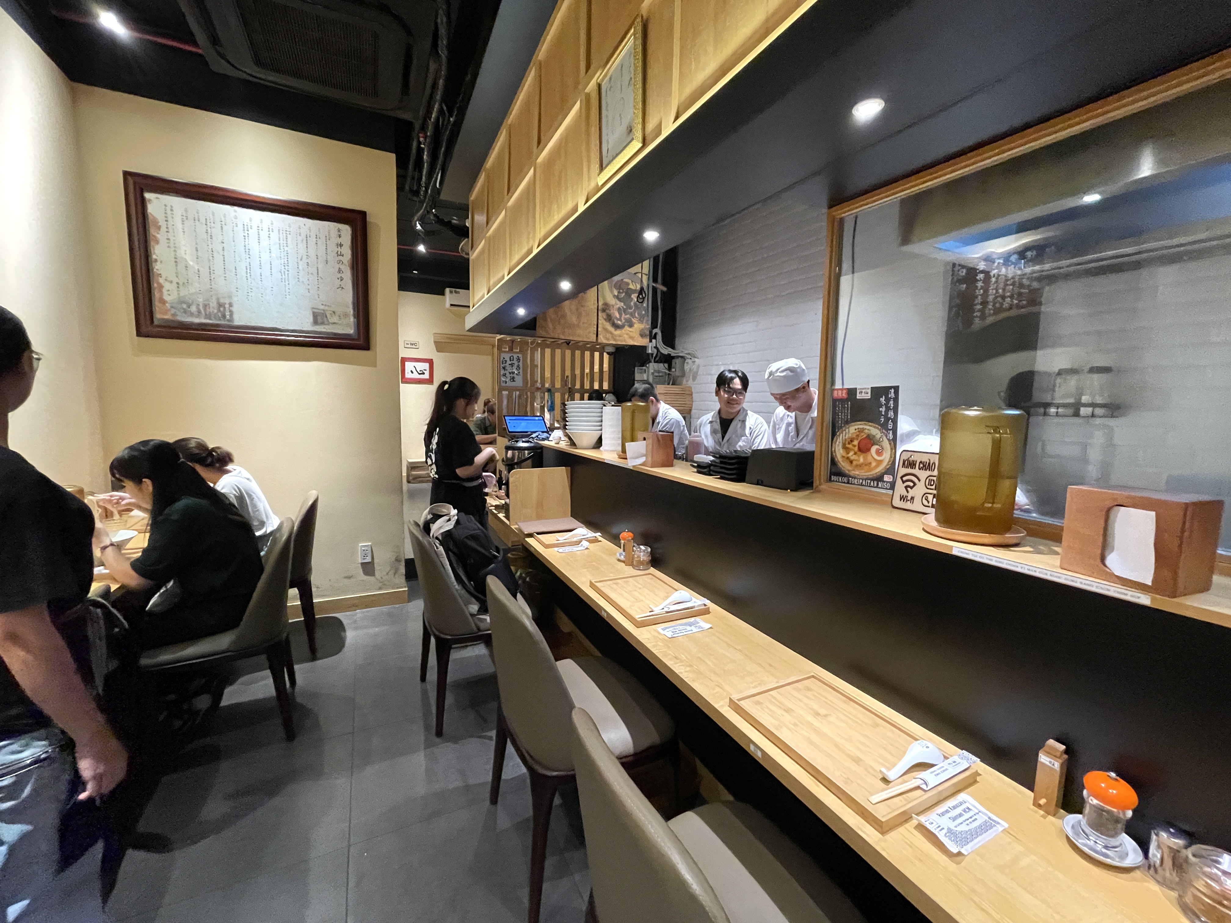 돼지 뼈나 소 뼈를 우려낸 국물에 고기와 면을 곁들여 먹는 것에 익숙한 '베트남 고객'들이었기에, 아마도 그와 비슷한 비주얼로 큰 궤를 맞추려고 하지 않았을까 싶다. 주방부터 외부까지 베트남 직원들로만 채워져 있는 것으로 보아, 일본에서 라멘을 배워왔든지 일본인 거리 어느 라멘집에서 오랜 기간 요리를 배웠든지 했을 것 같다. 직원들은 모두 쾌활하고 친절했다.