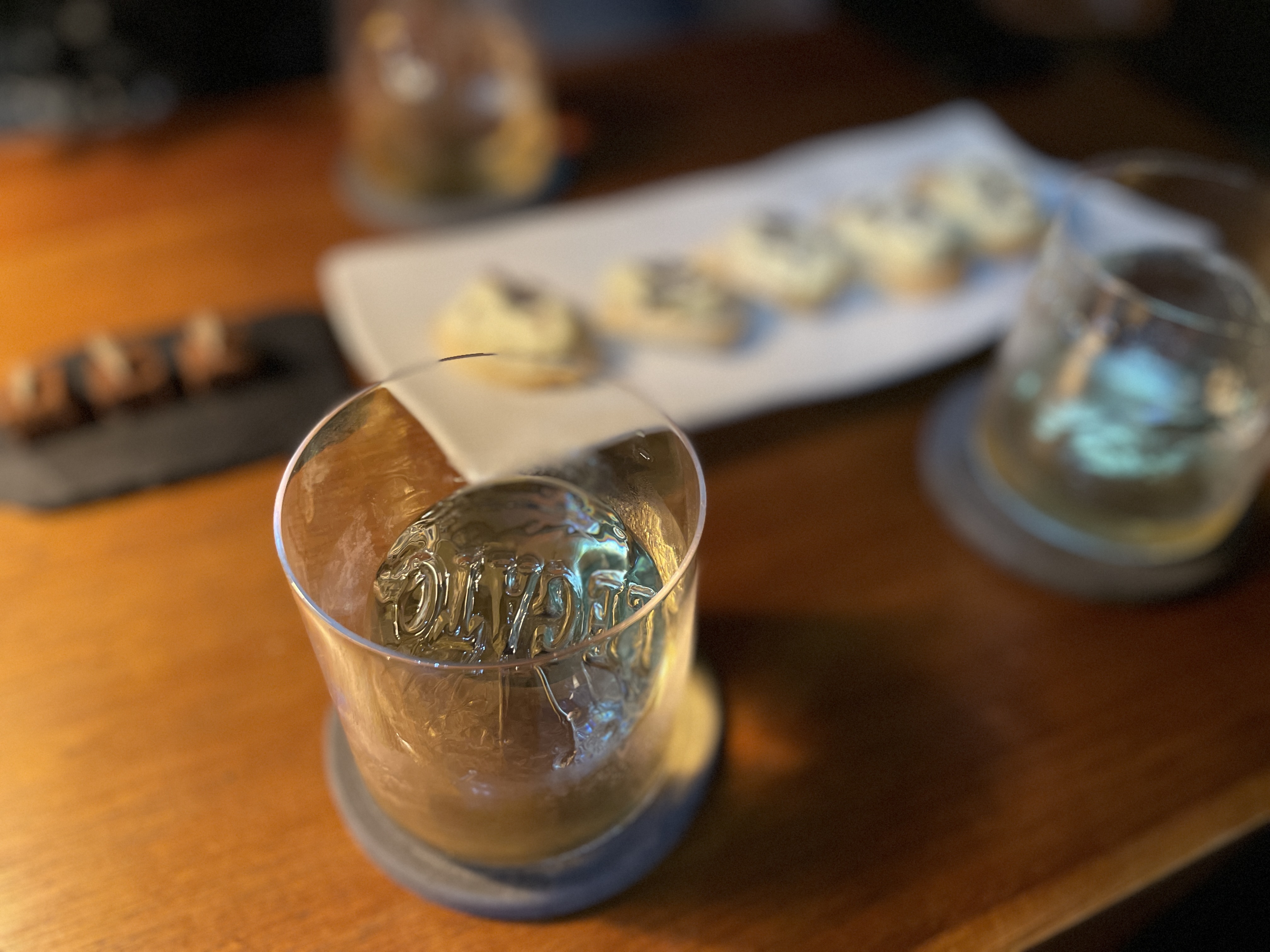 자리에 앉자마자 약간 뎁혀진 물수건을 각각 제공받는다. 온더락을 주문하여도 얼음부터 심상치 않다.