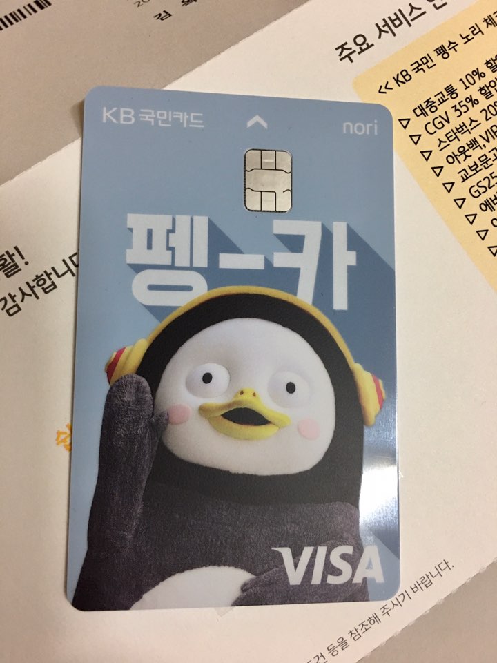 KB가 내 주거래 은행인데다가... 펭수 카드라니! 너무 귀엽다ㅠ