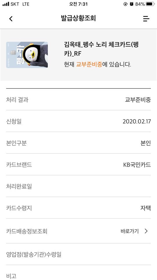하루에 카드 발급 정보를 열 두 번은 조회해 볼 정도의 그런 기다림