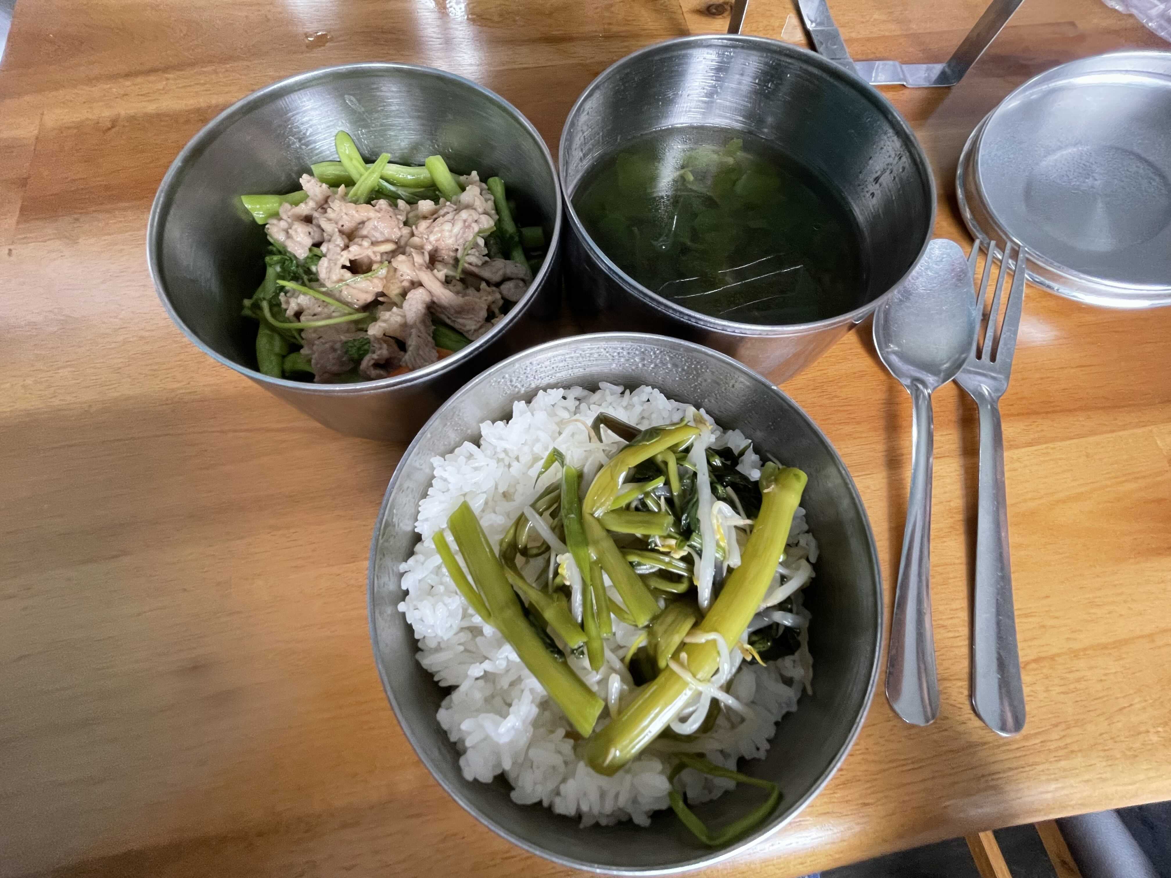 집 옆에 있는 밥집에서 처음 먹어본 메뉴. 딱 봐도 건강건강한 재료들. 3만~3만5천동 정도다.