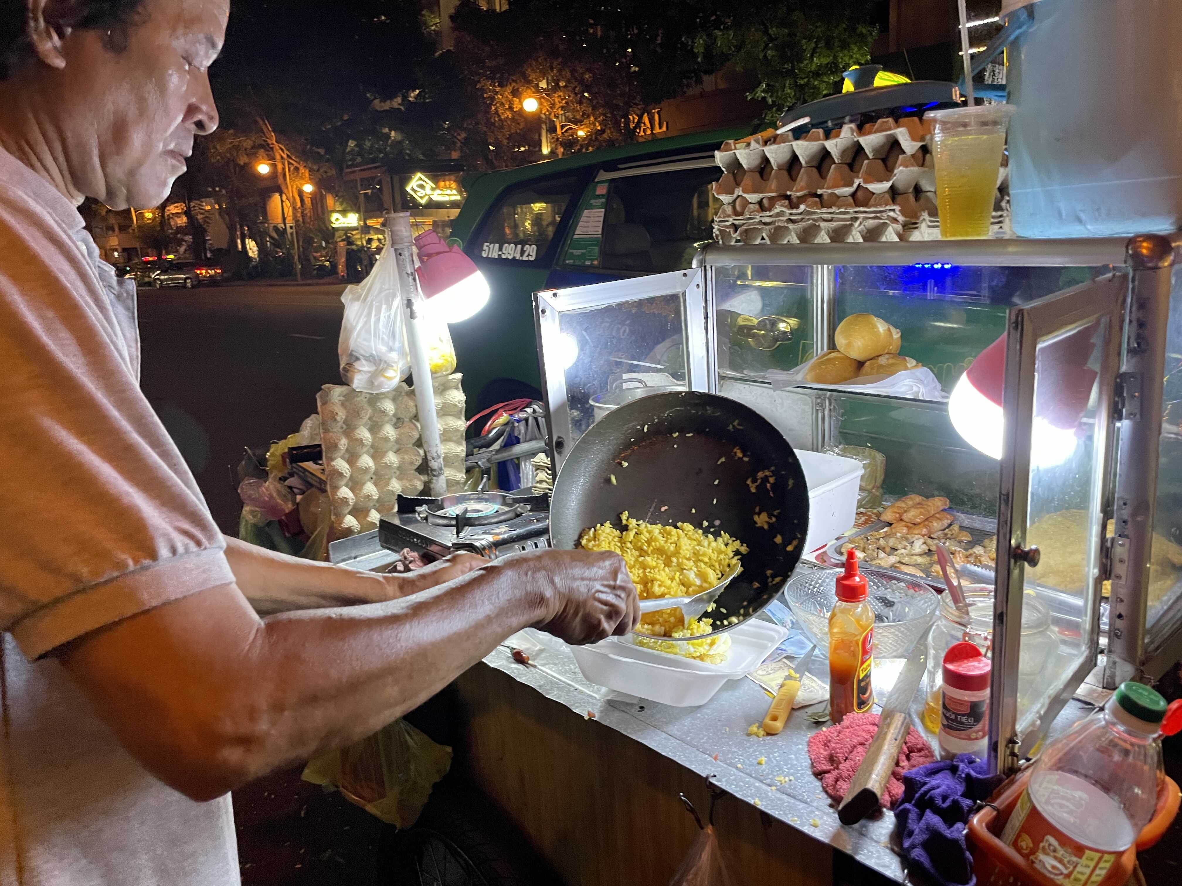 저녁때는 가끔 길거리에 밥 볶아주는 아자씨에게서 저녁밥을 사서 들어가기도 한다.