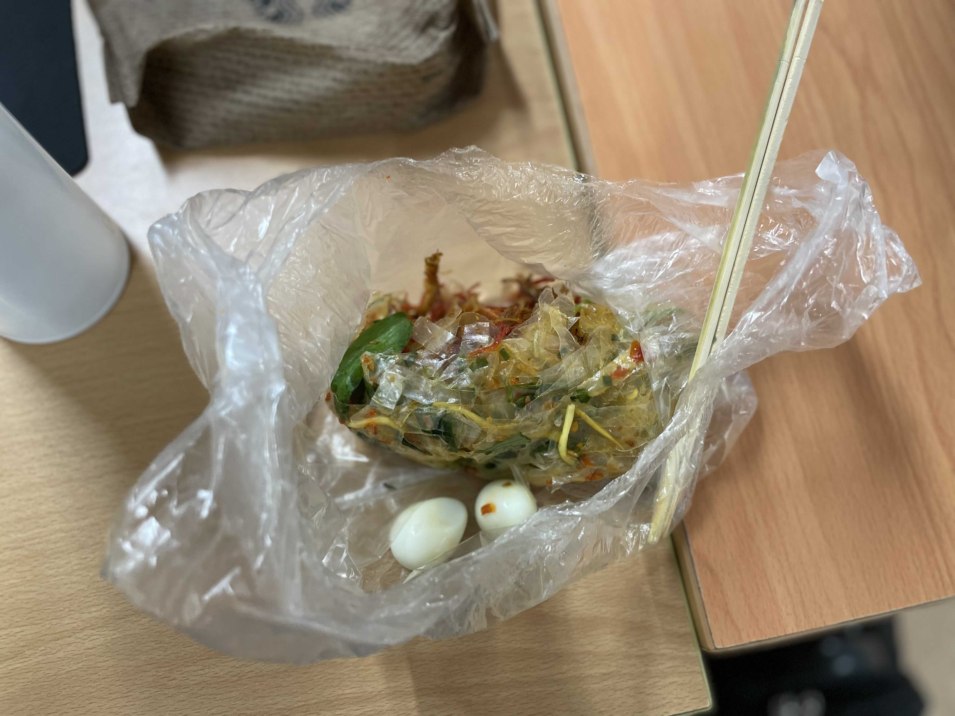 가끔 근무하다가 혼자 생각할 시간이 필요할 때나 시켜먹는 메뉴가 고기로 도배될 때에는 그냥 사무실 앞 도로변에 앉아서 점심을 먹는데, 맛이 꽤 괜찮다. 재료도 넣어달라는대로 넣어주고, 가격은 3만동 정도.
