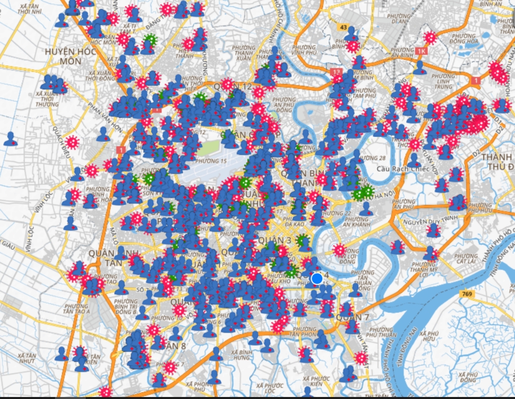 아래는 호치민 코로나 지도인데,