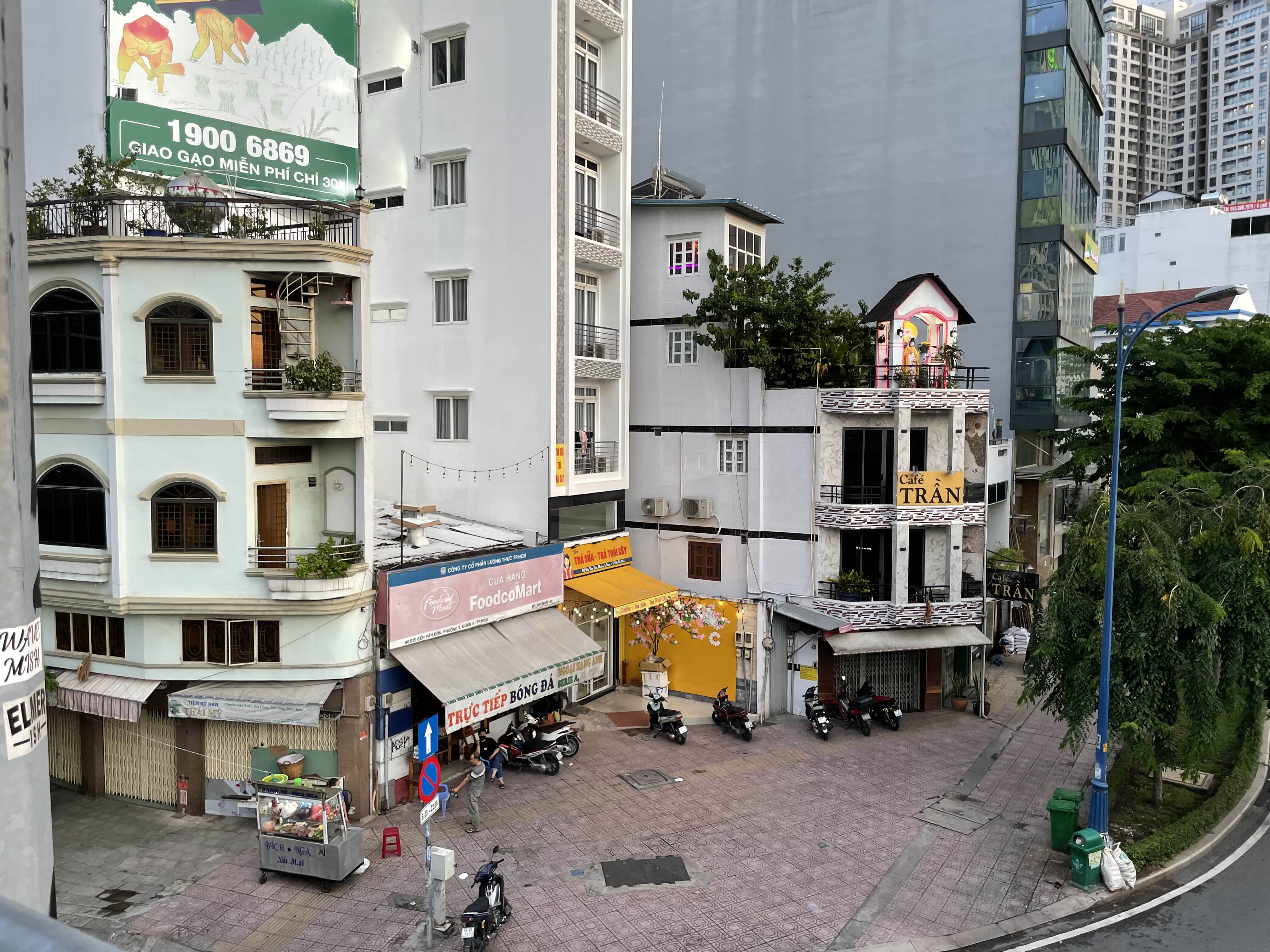제일 오른쪽 건물의 지붕에 있는 것이... 부처상 ( cafe tran 표지판 위 )