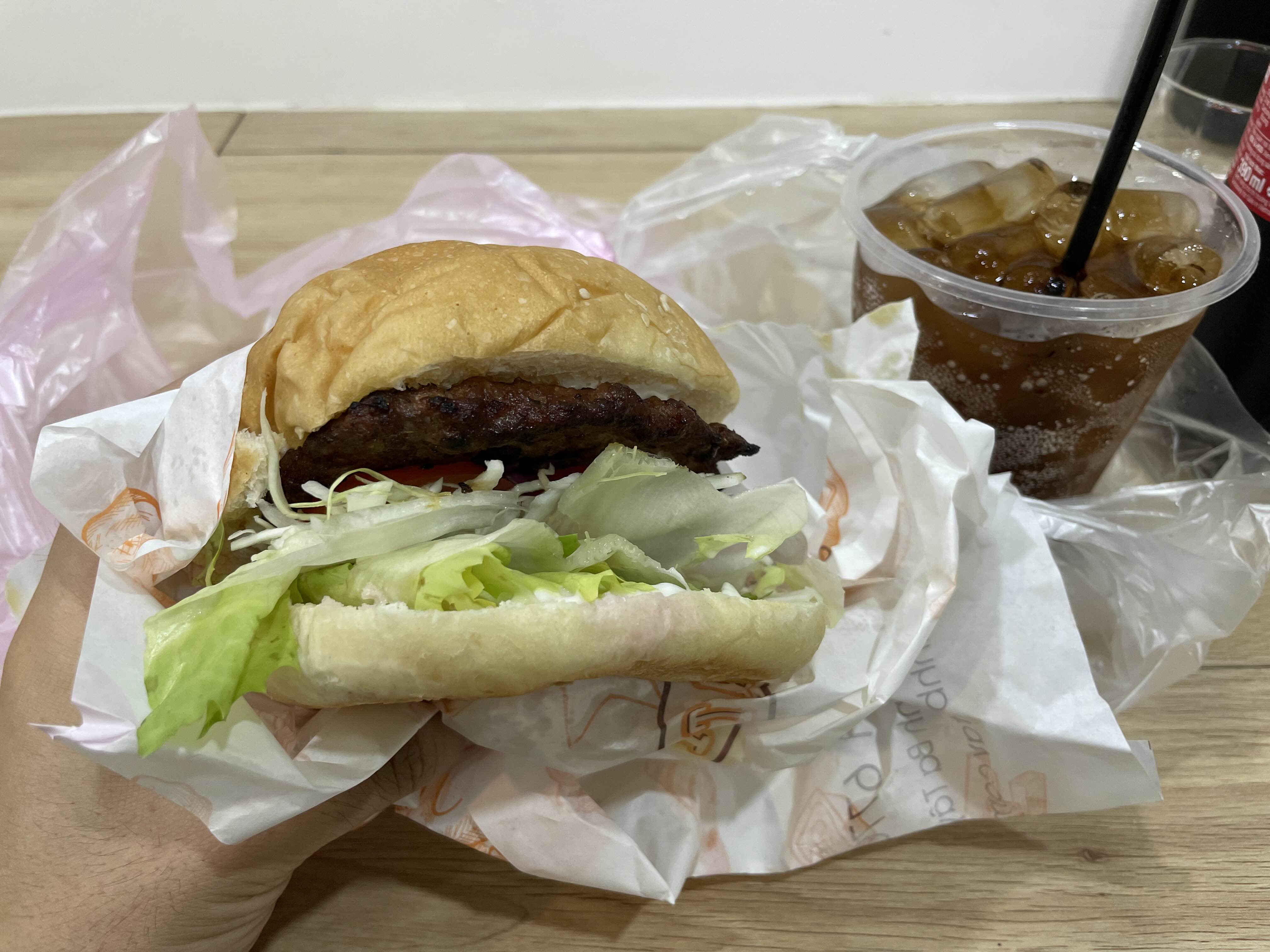 고기는 냉동 패티를 석쇠에 다시 굽는 방식이라, '로컬이라면 수제로 만들어서 어설퍼도 본연의 맛을 유지하지 않을까.'