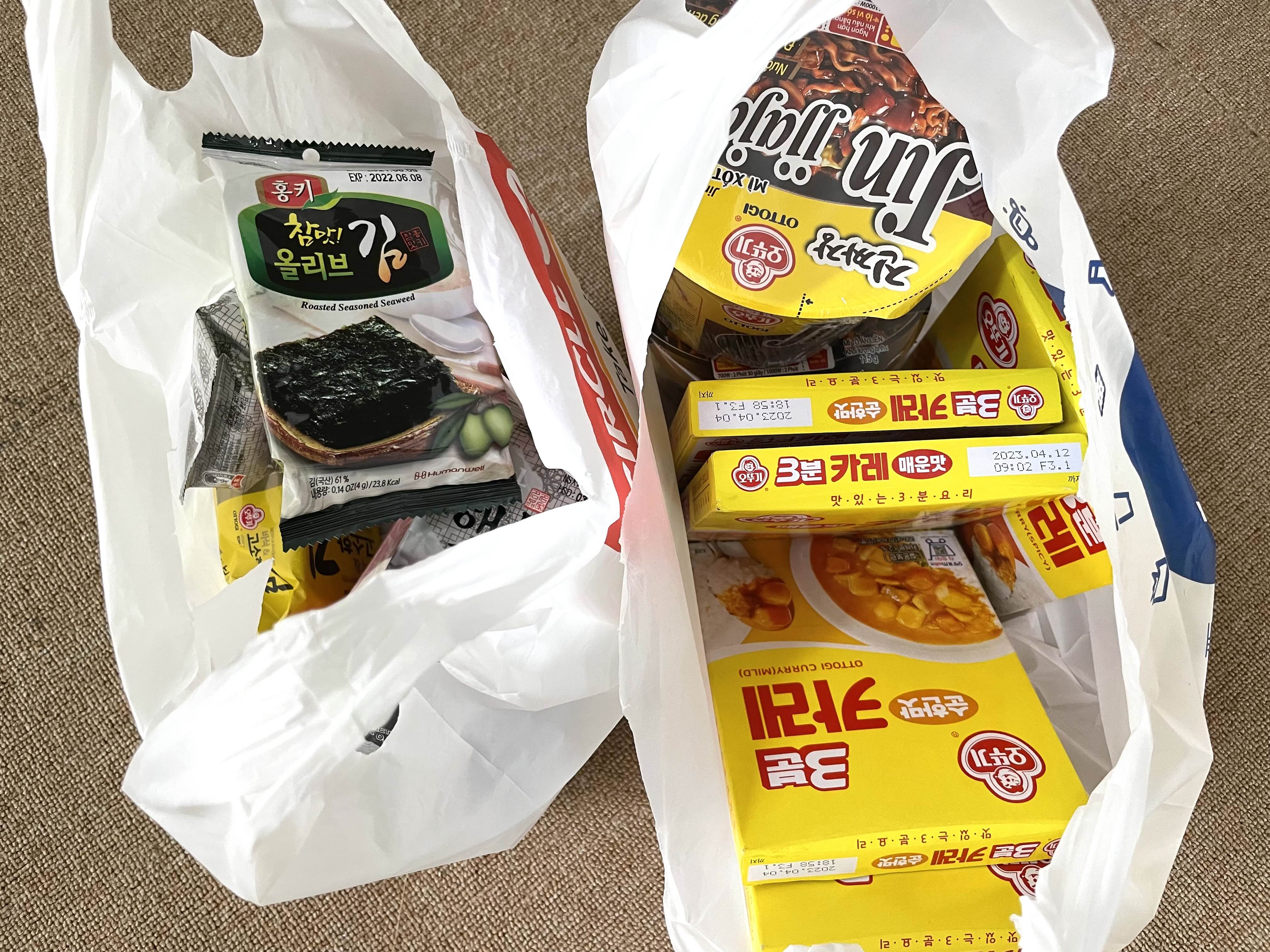 오뚜기 카레는 6개 모두 구매. 김 조금과 몇몇가지 땡기는 것들을 집히는대로 주워담았다.