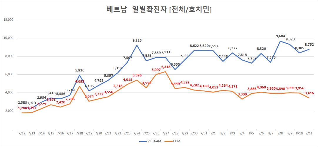 호치민시 오늘 확진자 수는... 총 3,416명! (8/11)