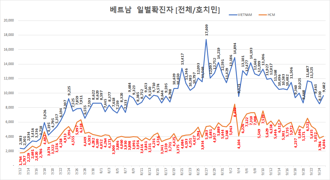 오늘의 호치민시 코로나 확진자 수는 4,046명 ( 9/25 )