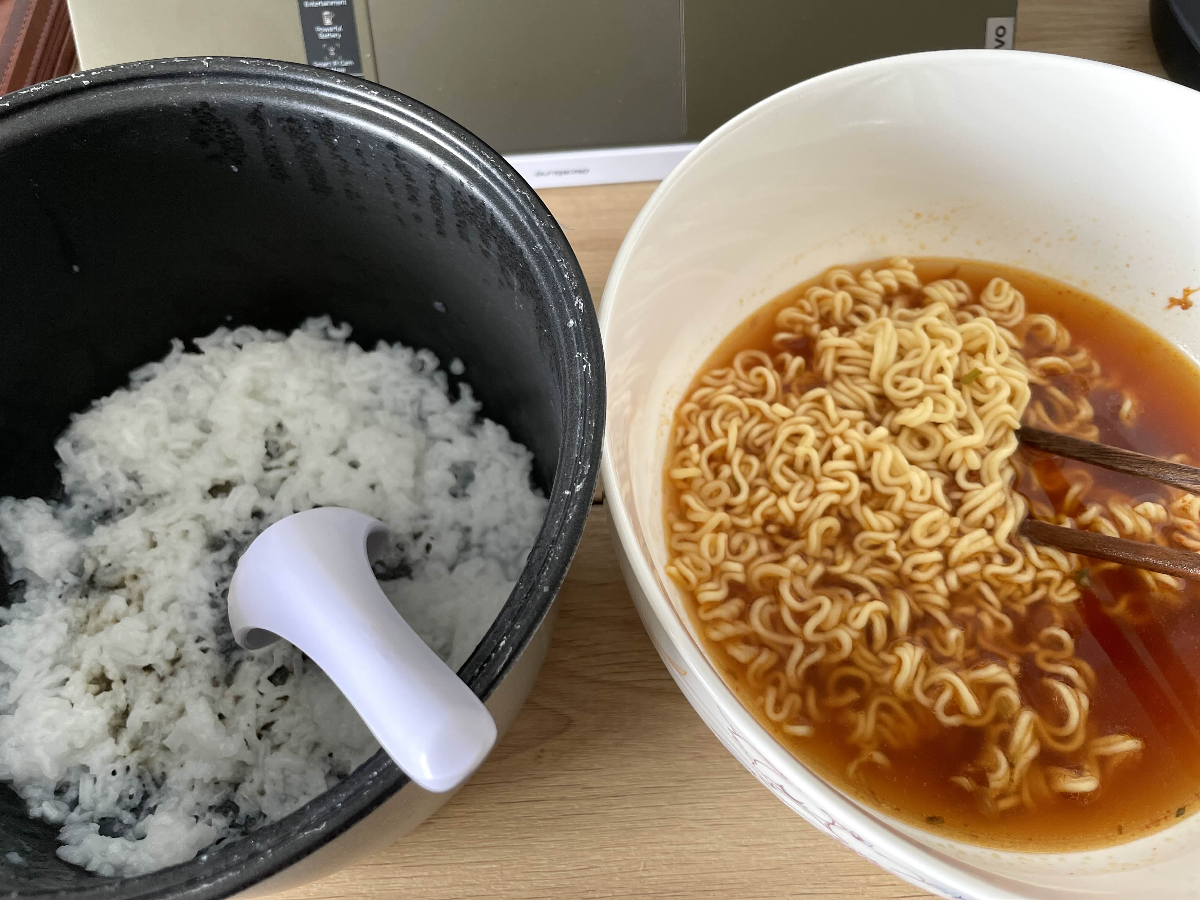 마침 또 점심 때이므로... 미쩡쯩 ( 볶음면 + 달걀 후라이 ) 도 하나 들고나왔다.