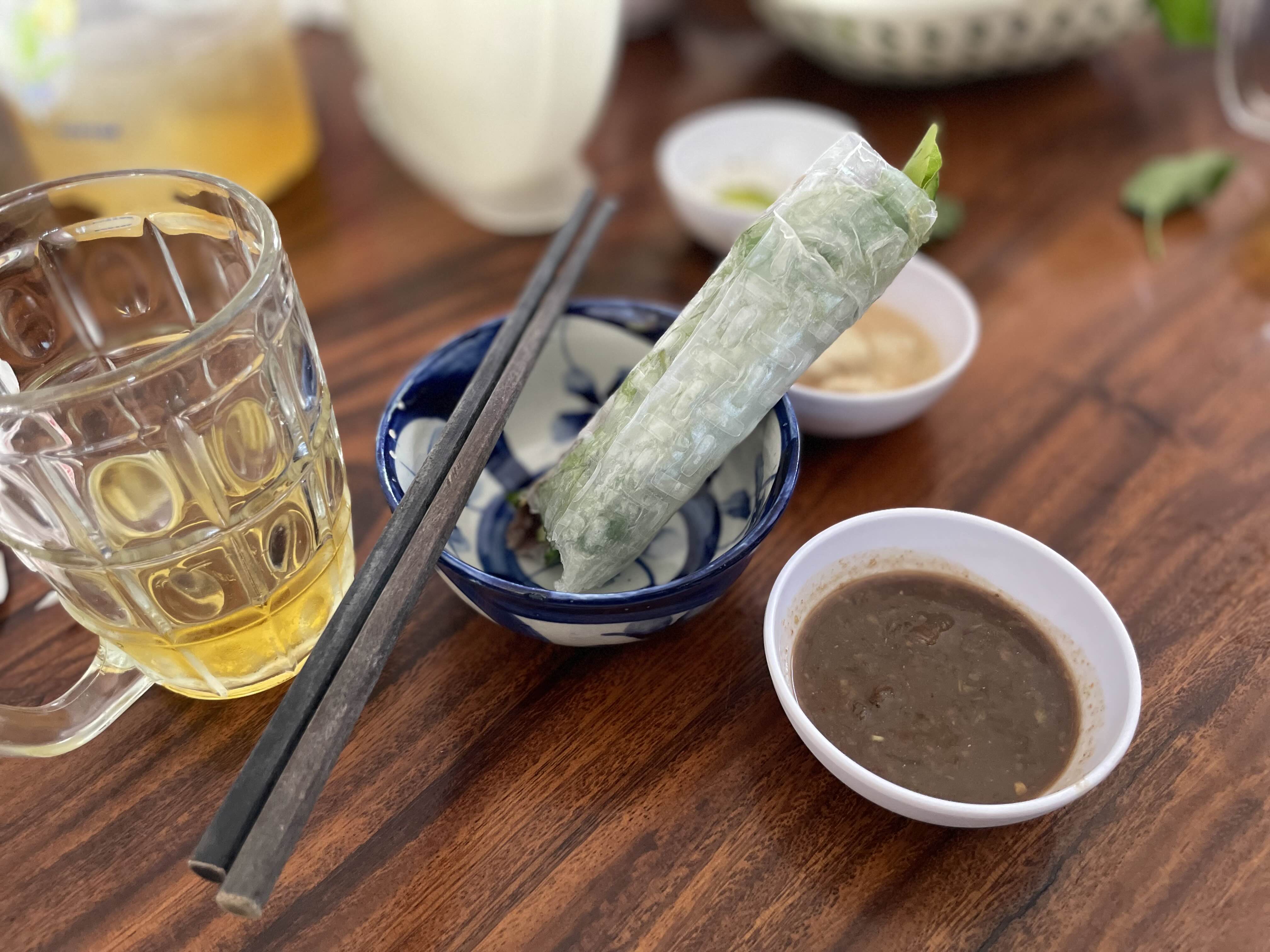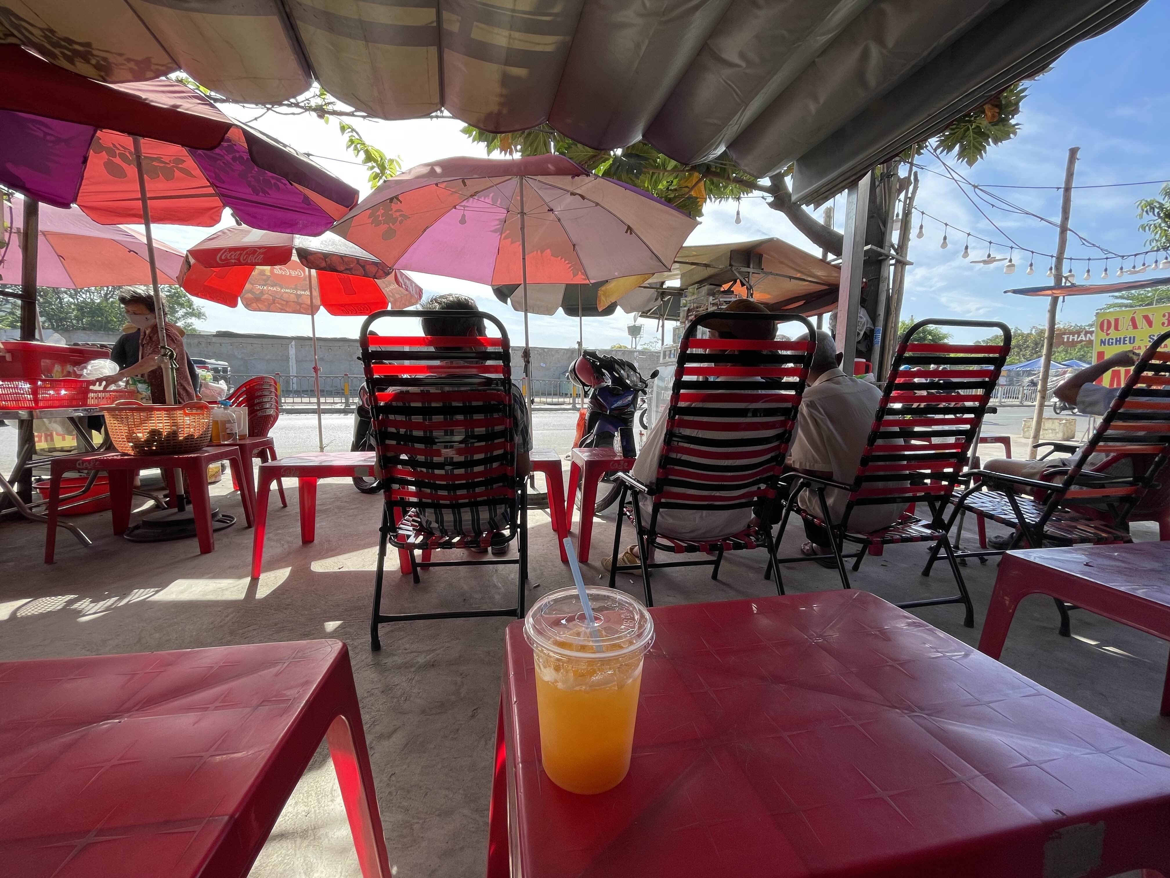 아침에 조금 일찍 도착하여, 호치민표 썬배드에 누워서 '느억깜' 한 잔을 마셨다.