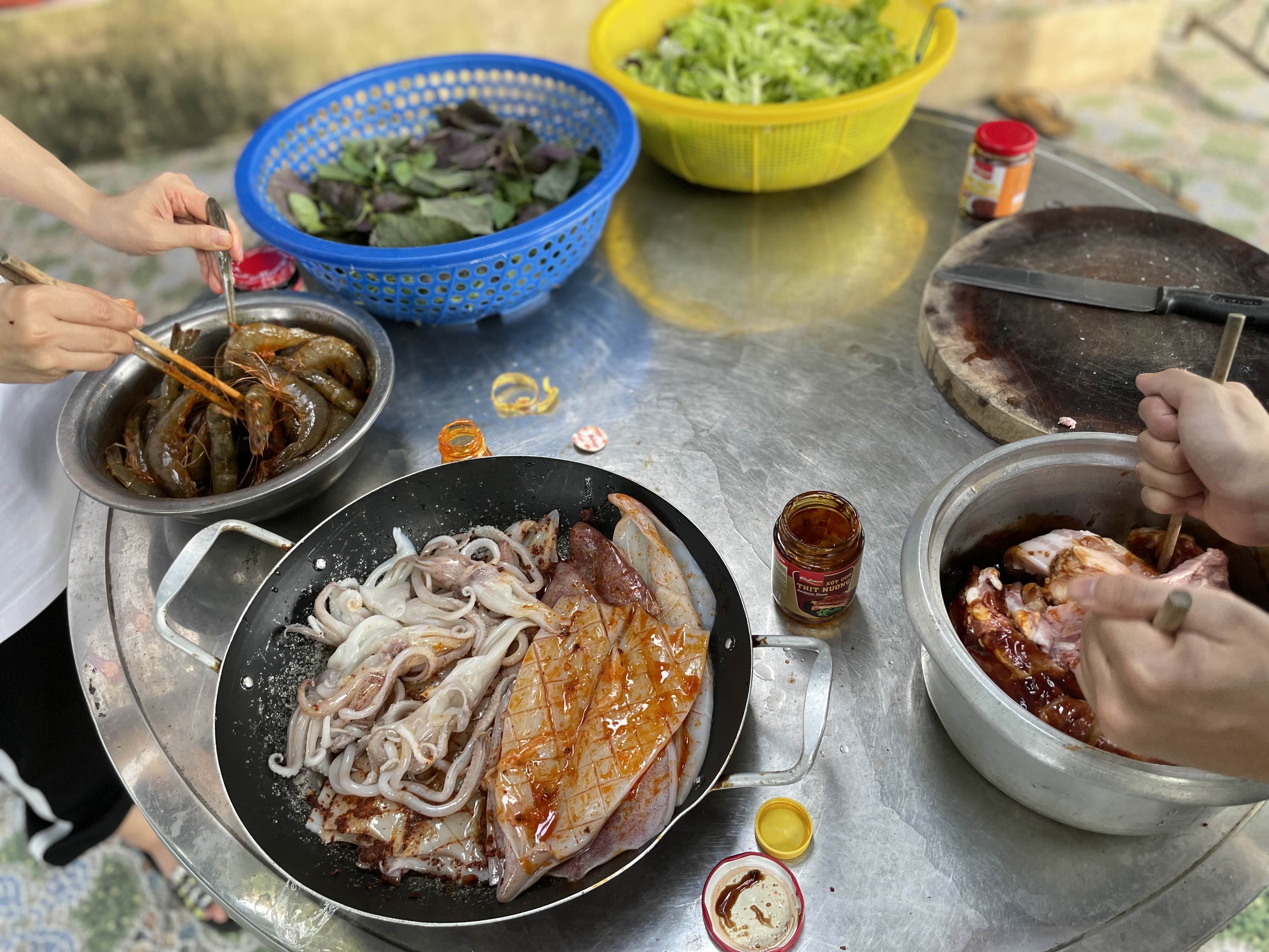 베트남에서 모여서 좀 '거하게' 먹는다고 하면, 무조건 고기에 핫팟은 기본이다. ( 돼지고기, 소고기, 해산물, 핫팟 )