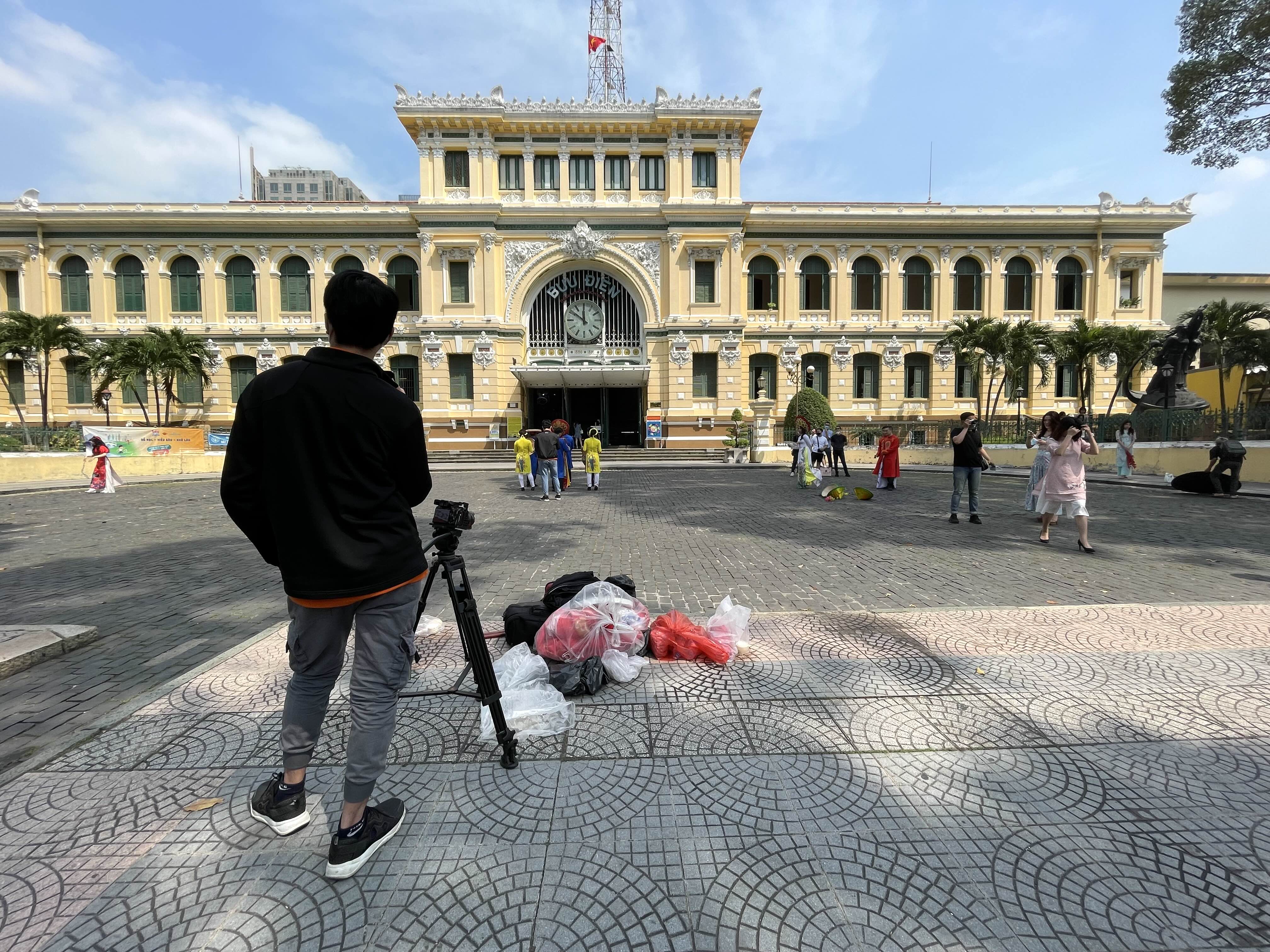 호치민시 우체국 앞이 시끌시끌하길래 보니까, 뗏 관련 영상을 찍는 것 같다.
