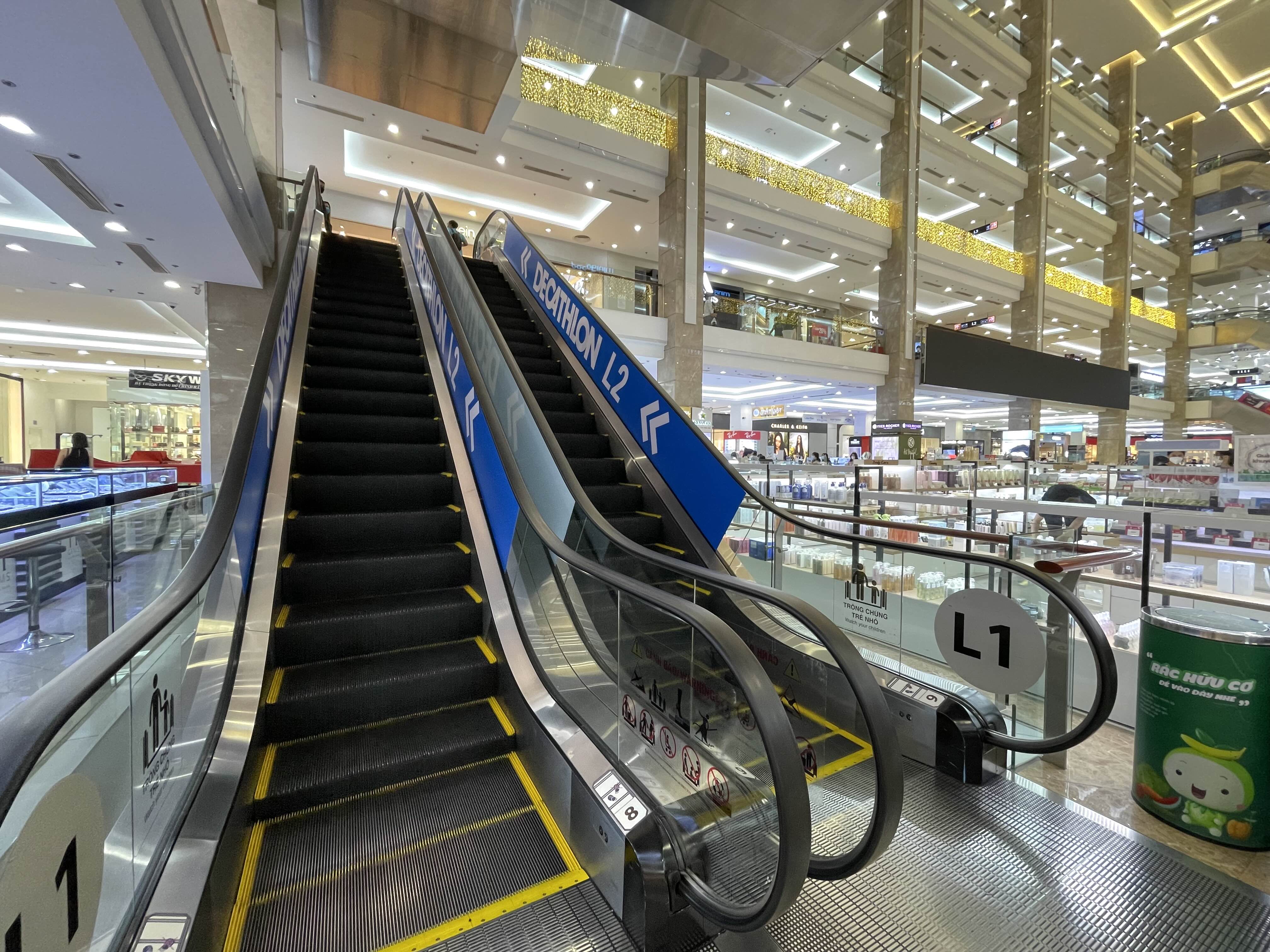 2군의 '빈컴 메가몰'인데, 에스컬레이터부터 스티커들이 쫙 붙어있다.
