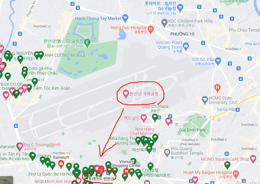 아래는 어제의 떤빈 나들이 스케치 ( tân bình 중에서도 공항 왼쪽 지역 )