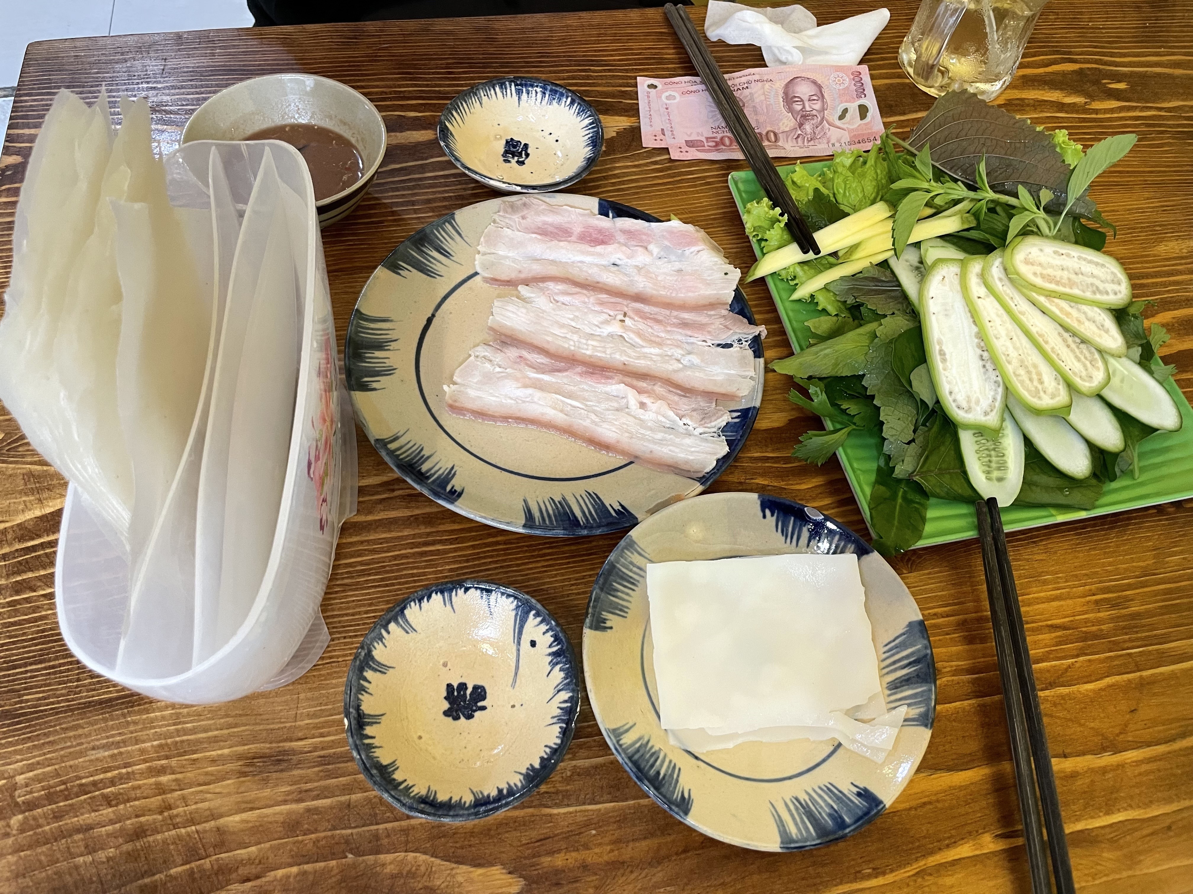 우리는 '삼겹살 고기 반짱'을 주문하였는데, 1판에 가격은 한 7~8만 동 정도.
