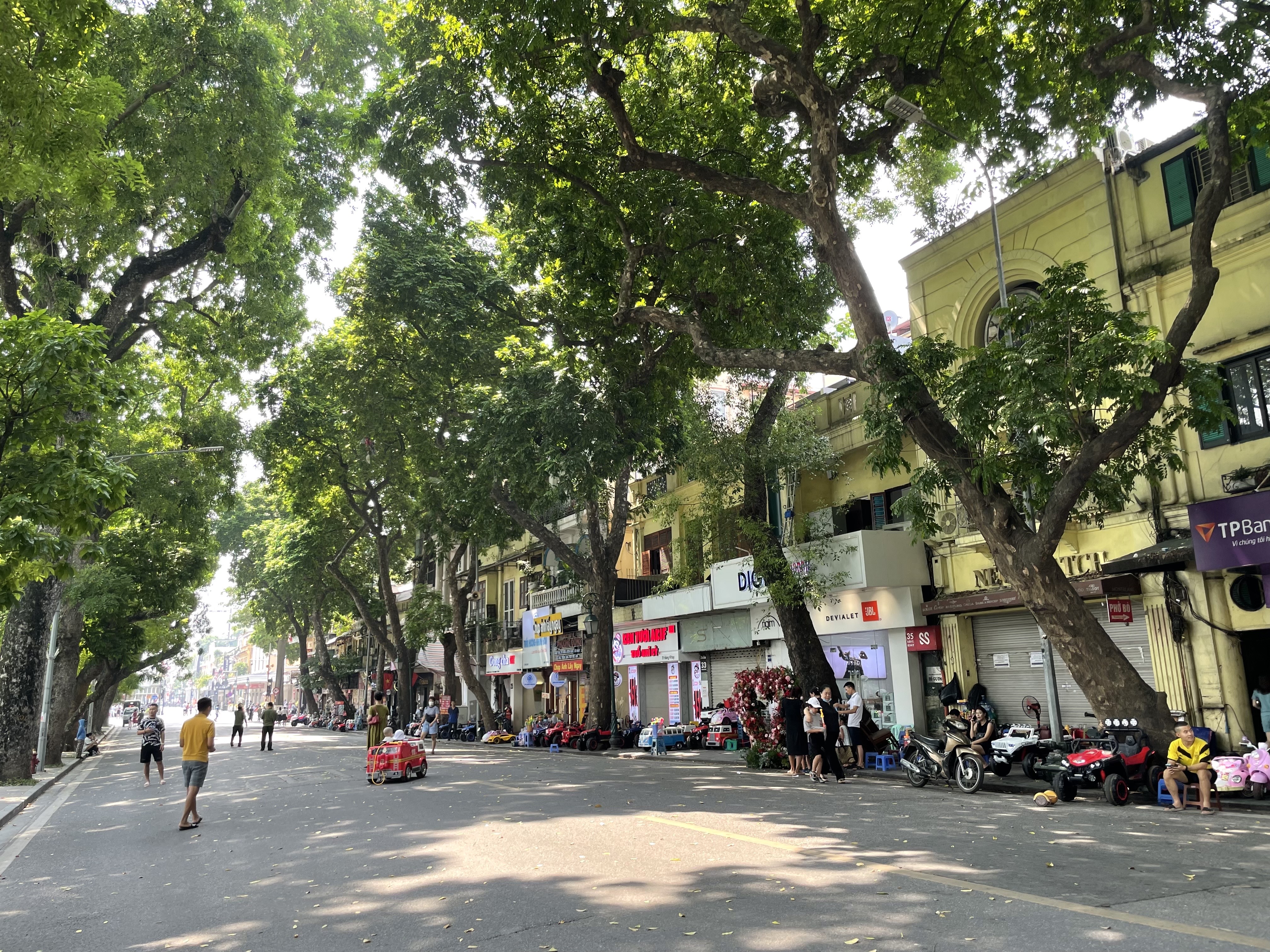 차가 사라진 거리에, 아이들용 전동차를 빌려주는 상인들이 가득하다.