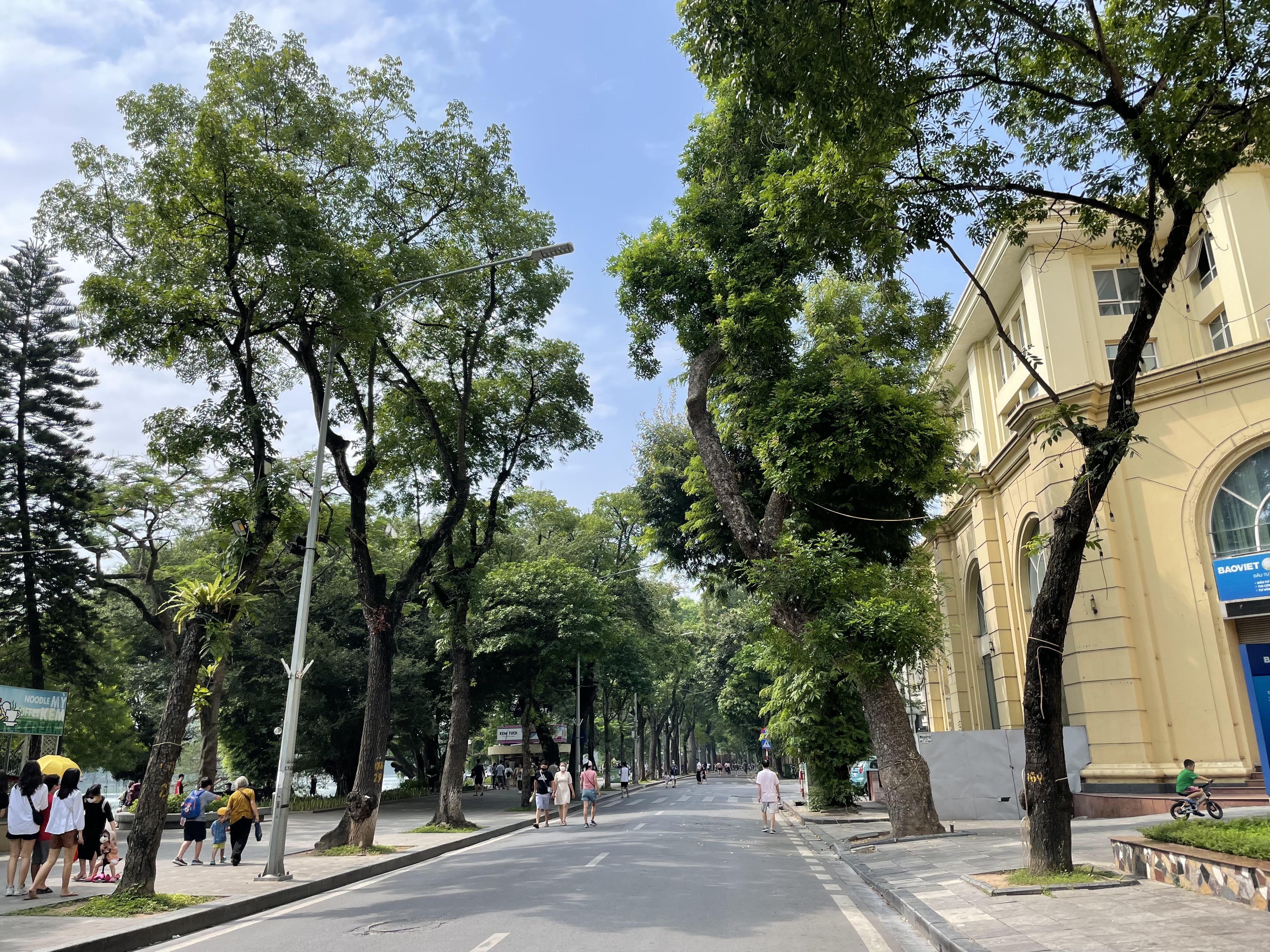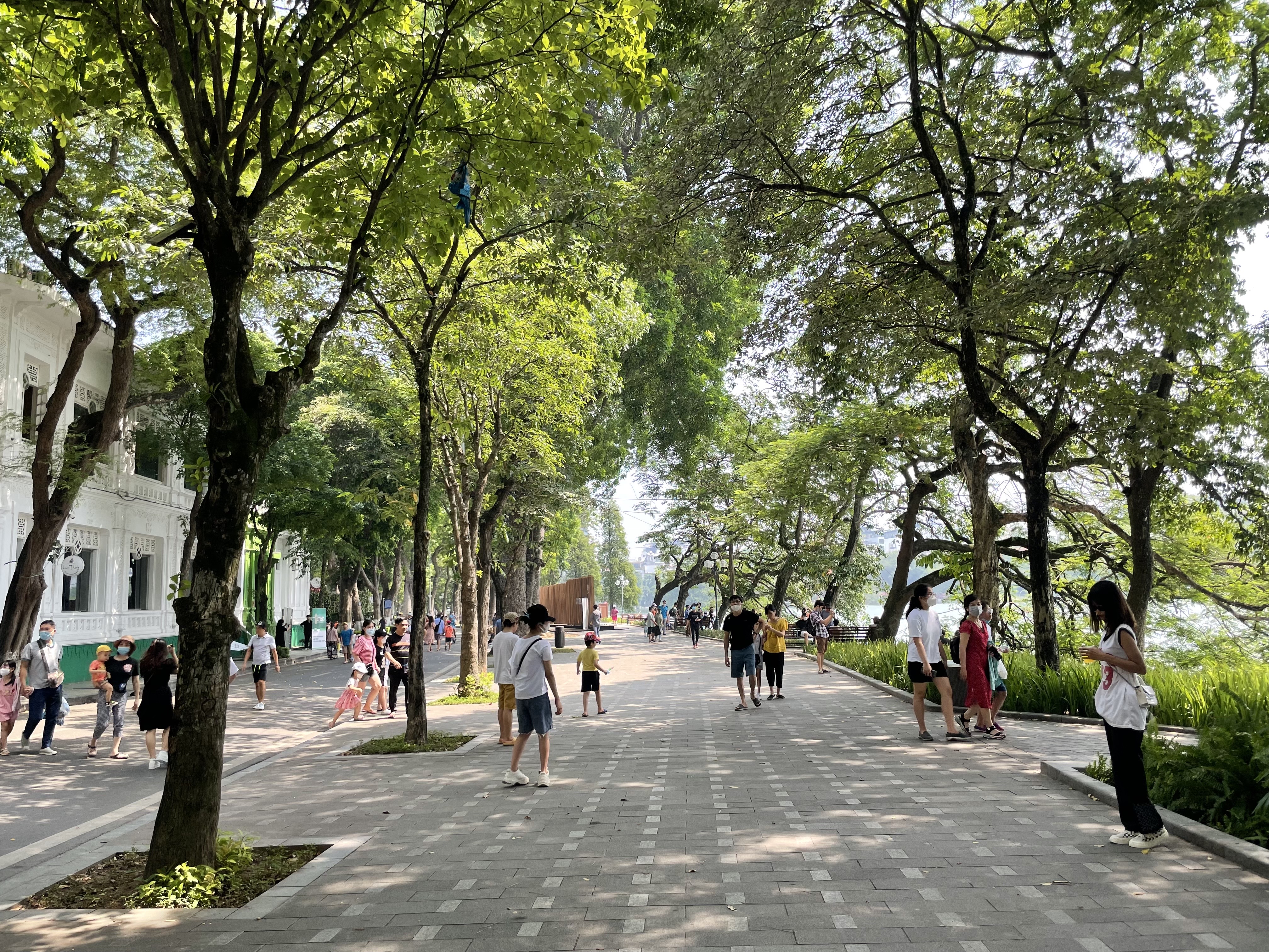 주말 아침, 호안끼엠 호수 근처의 풍경.