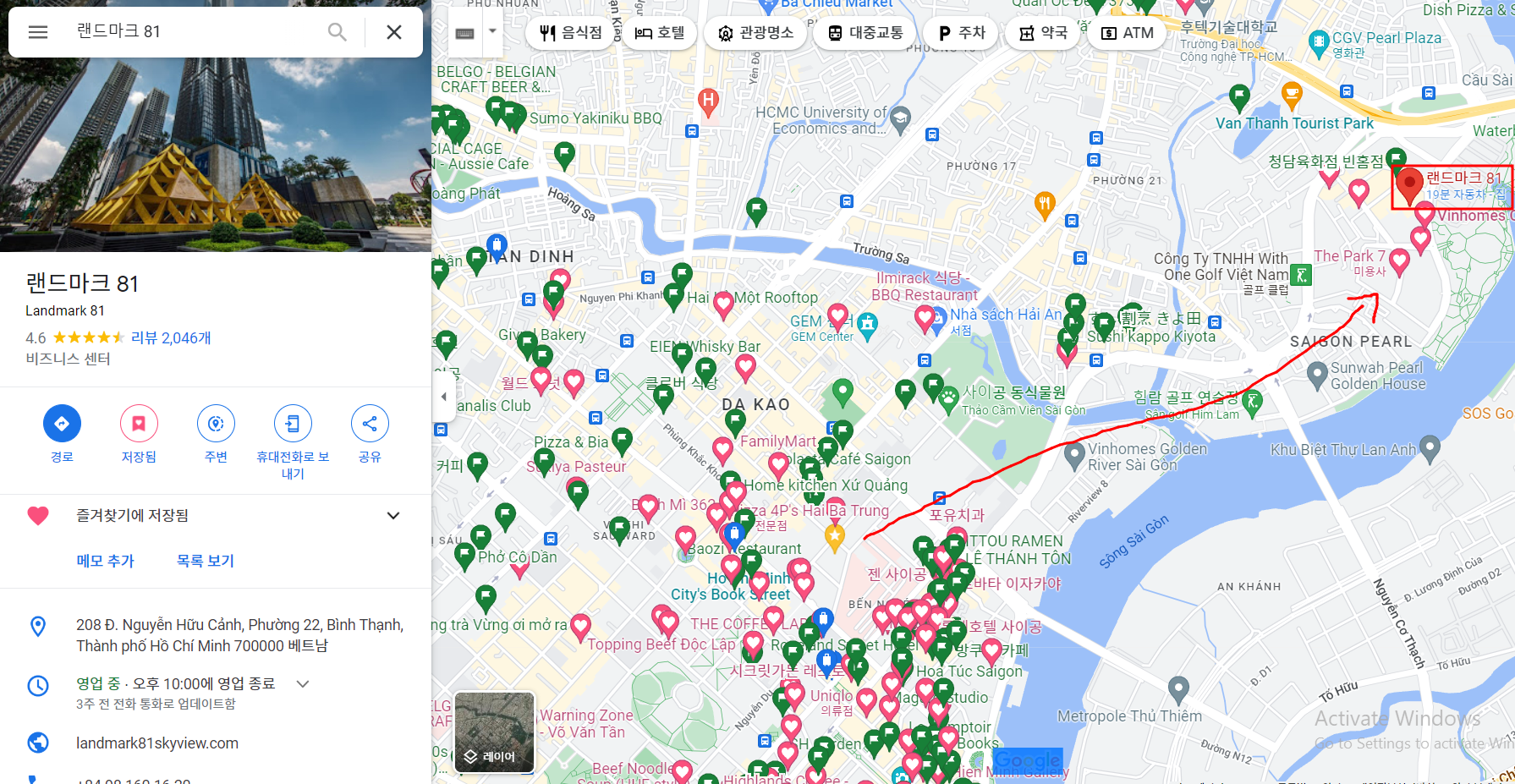 추가로 근처에 갈만한 곳이라면... 바로 앞에 위치해있는 '빈홈 센트럴 파크'? 휘휘 둘러보기 좋다.