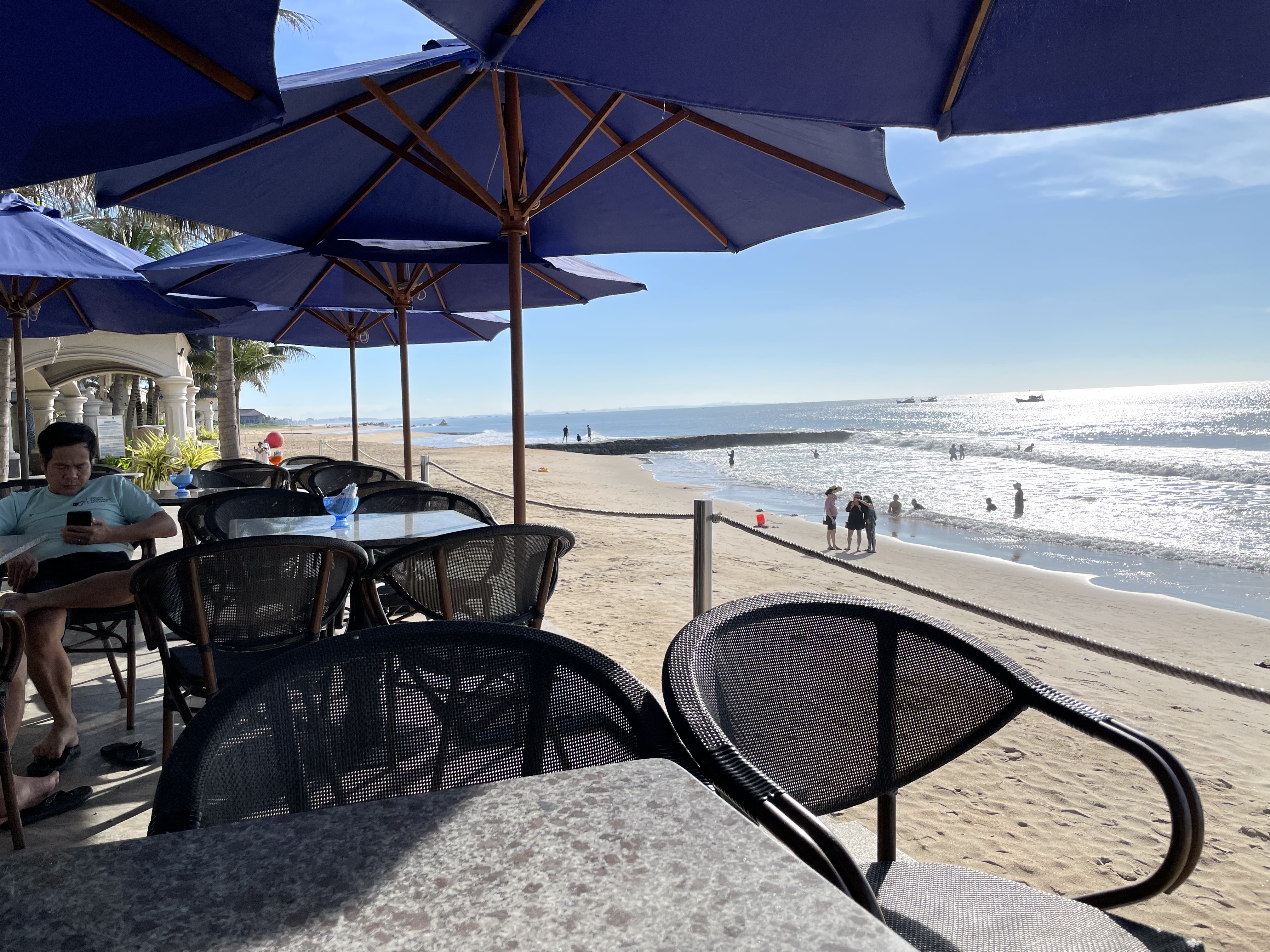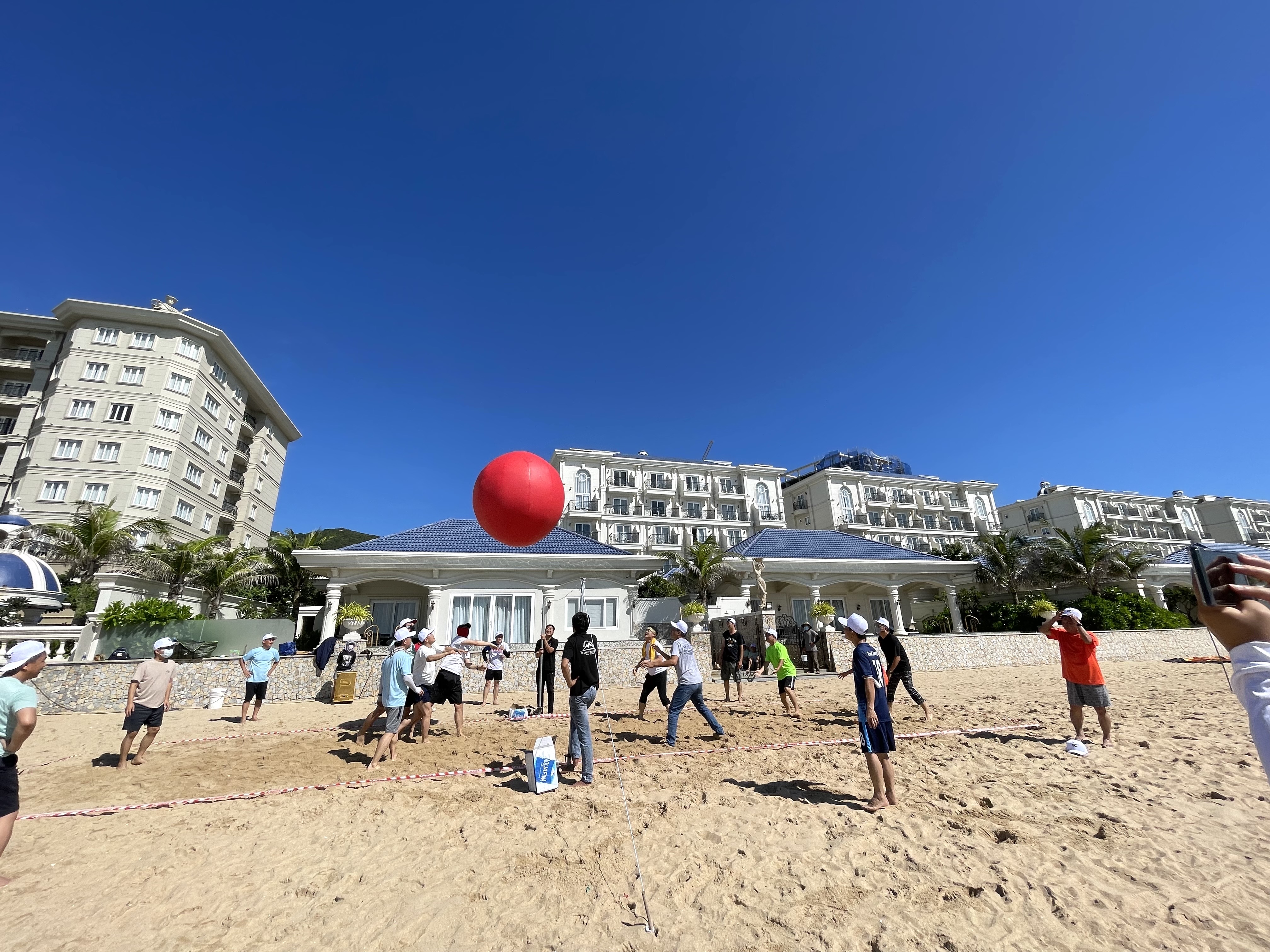 아침을 맞이하여 땡볕에서 비치 발리볼을 하였는데, 5분만에 몸이 땀으로 흠뻑 젖는 것을 경험할 수 있다.