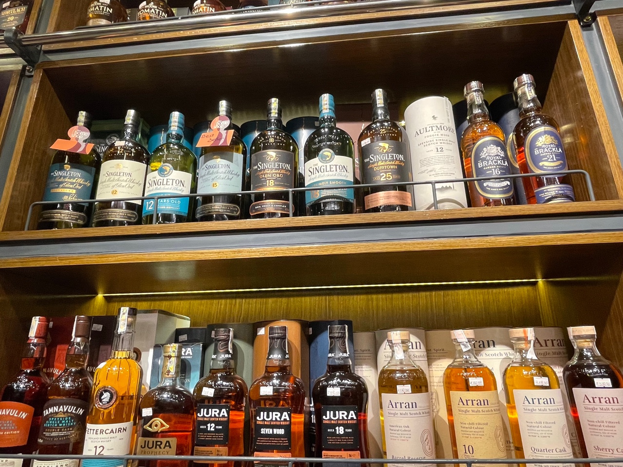 싱글 몰트 위스키와 블렌디드 위스키를 구별하여 진열 해 놓았고, 브랜드와 연도별로 차례대로 진열해 놓았다.