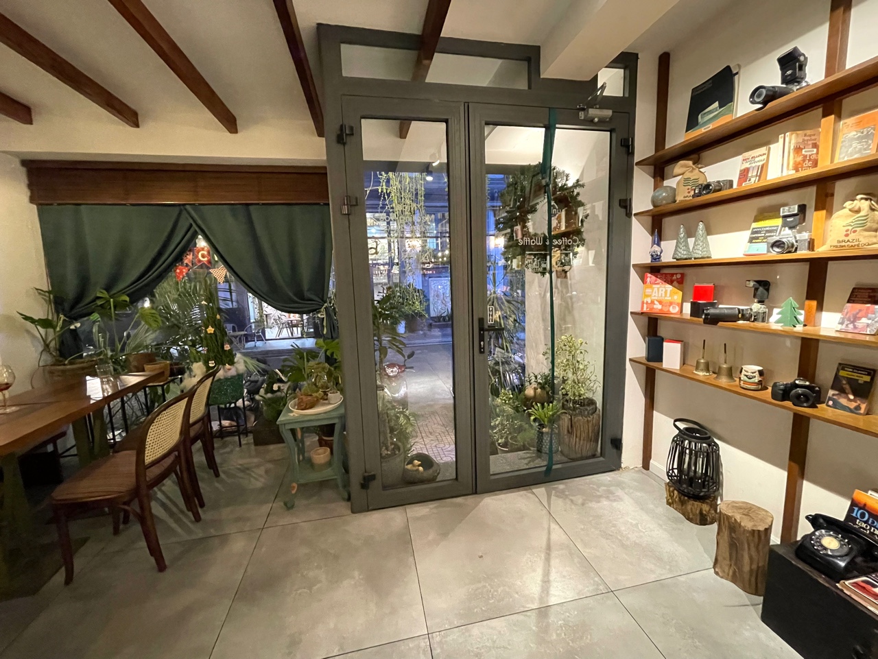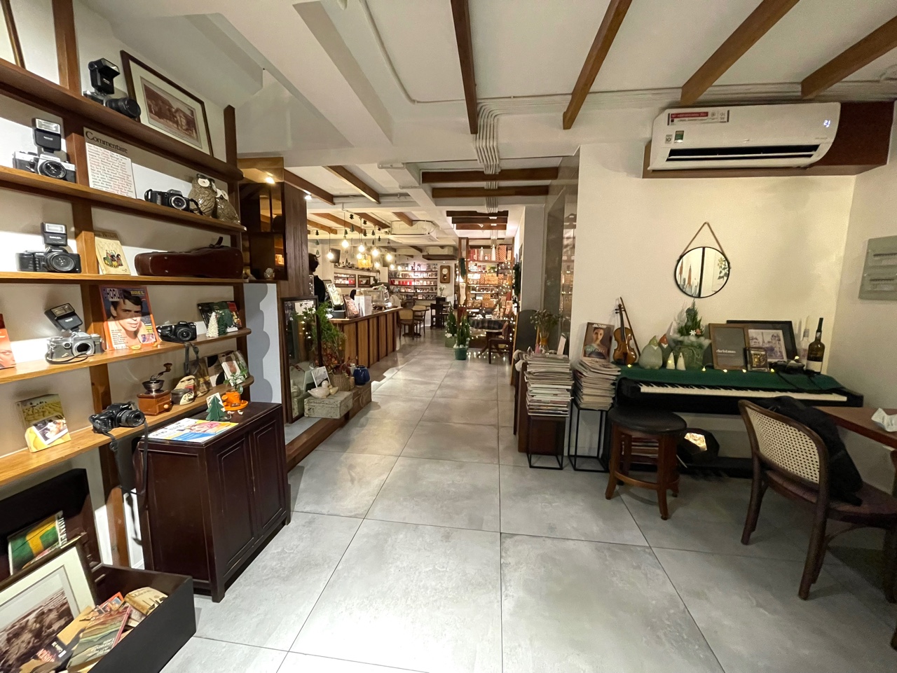 한쪽 벽면에는 오래된 필름 카메라들이 줄지어 늘어서 있었고, 가게의 곳곳은 크리스마스 장식으로 많이 꾸며져 있었다.