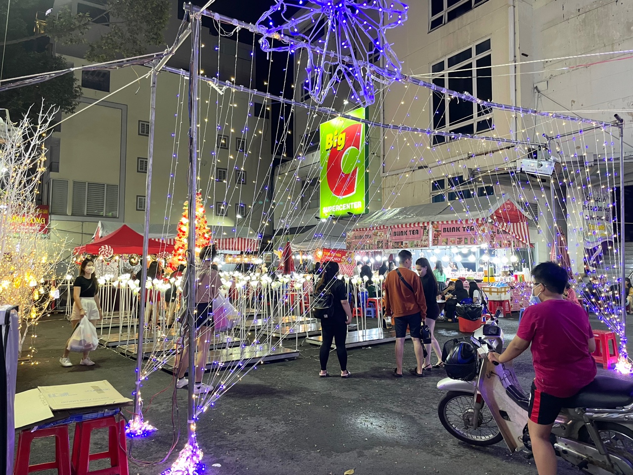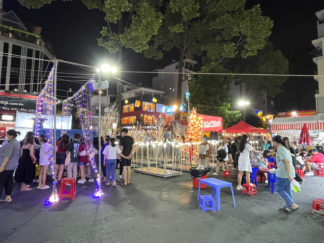 오른쪽에는 또 다른 나이트 마켓이 벌어지고 있었는데, 주말만 되면 호치민의 여러 곳에서 벌어지는 '헬로 마켓'이라든지 로컬 나이트 마켓들과 비슷한 구성을 보였다.