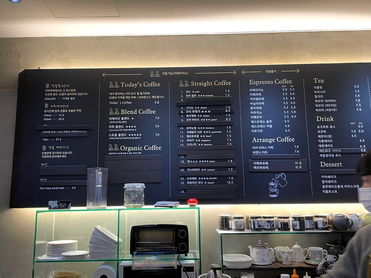 대략적인 메뉴. 케냐 AA 핸드 드립 커피를 시켰던 것 같은데, 맛이 좋았다.