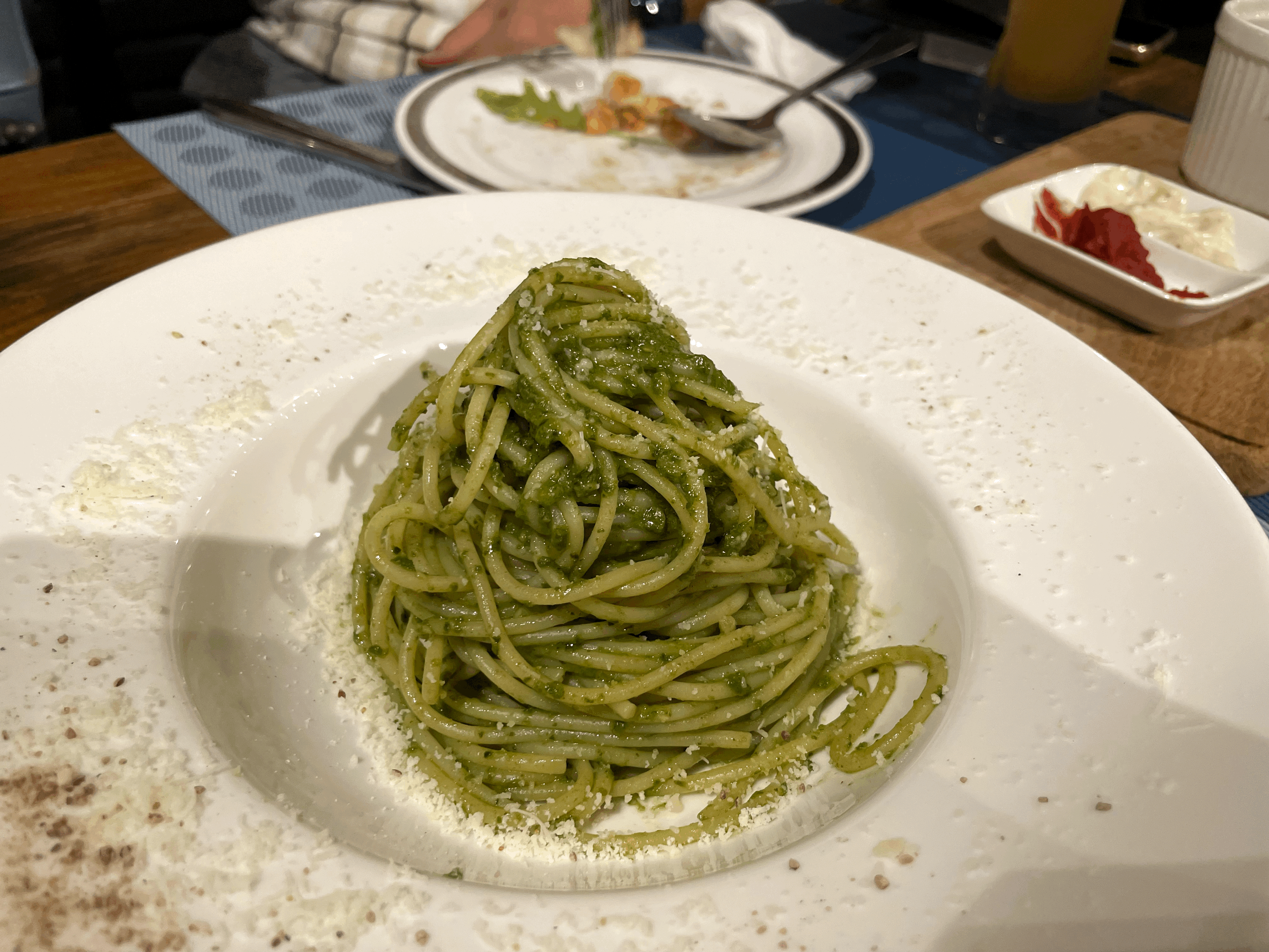 우리는 시그니처 메뉴 위주로 주문을 하였는데, 하몽을 얹은 피자와, 페스토 파스타, 라자냐, 참치 샐러드, 무슨 스테이크 등을 추천받아서 주문했다... 두근두근.