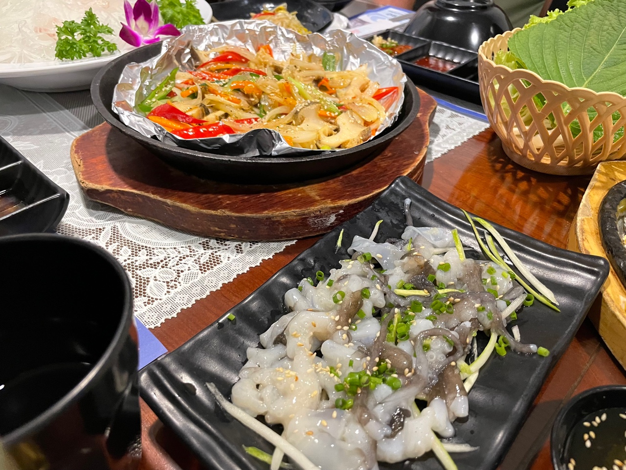 뒤이어서 광어회가 나왔는데, 베트남에서 광어회를 보고는 반가워서 "베트남에서도 광어가 잡히나요?"라고 물어보았다.