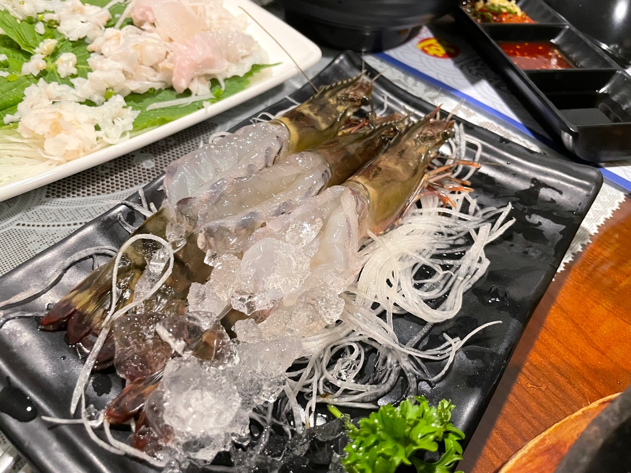 서비스로 주신 무슨 새우 회인데... 이 또한 적당히 달콤하니 맛있었다.