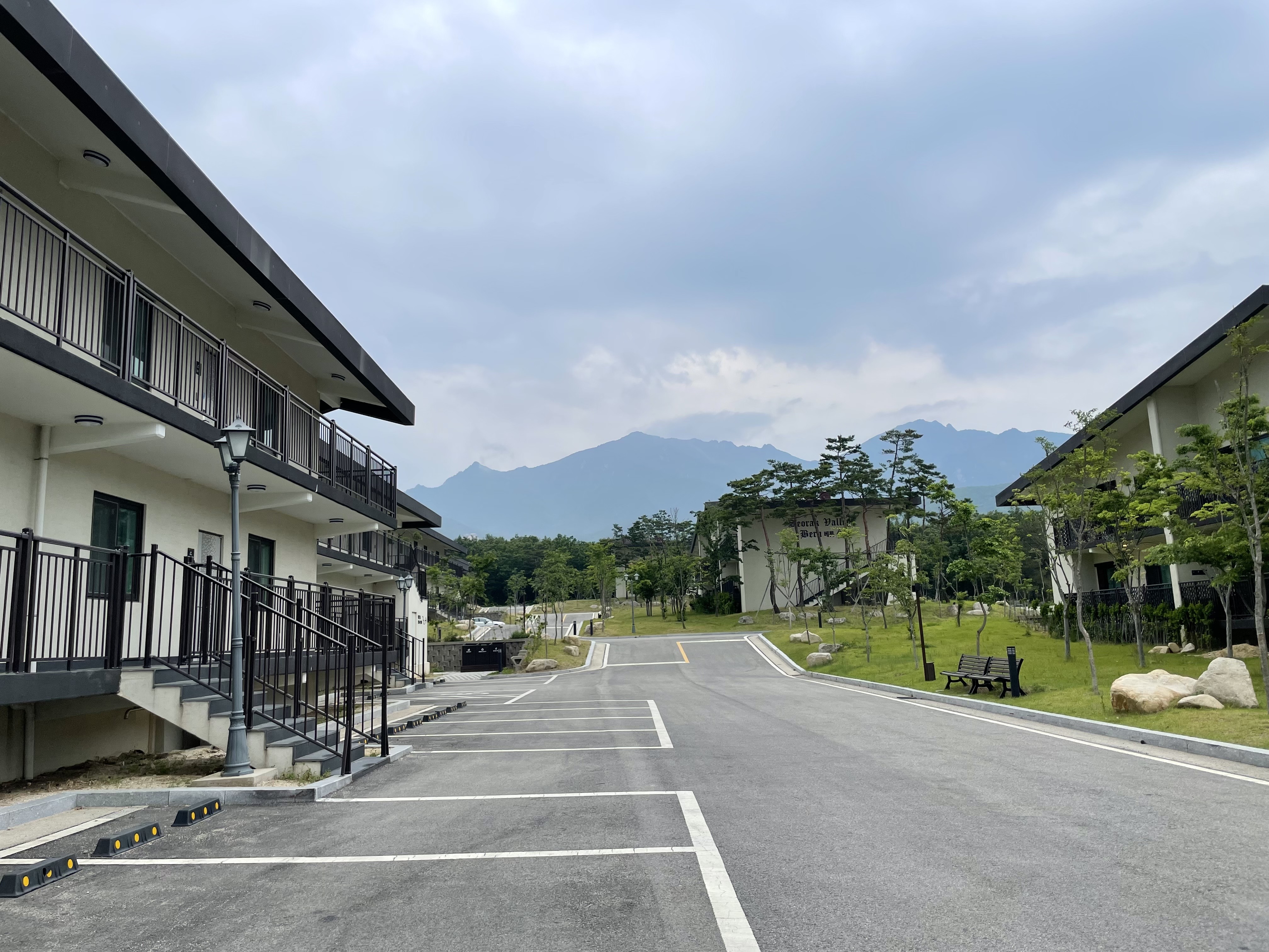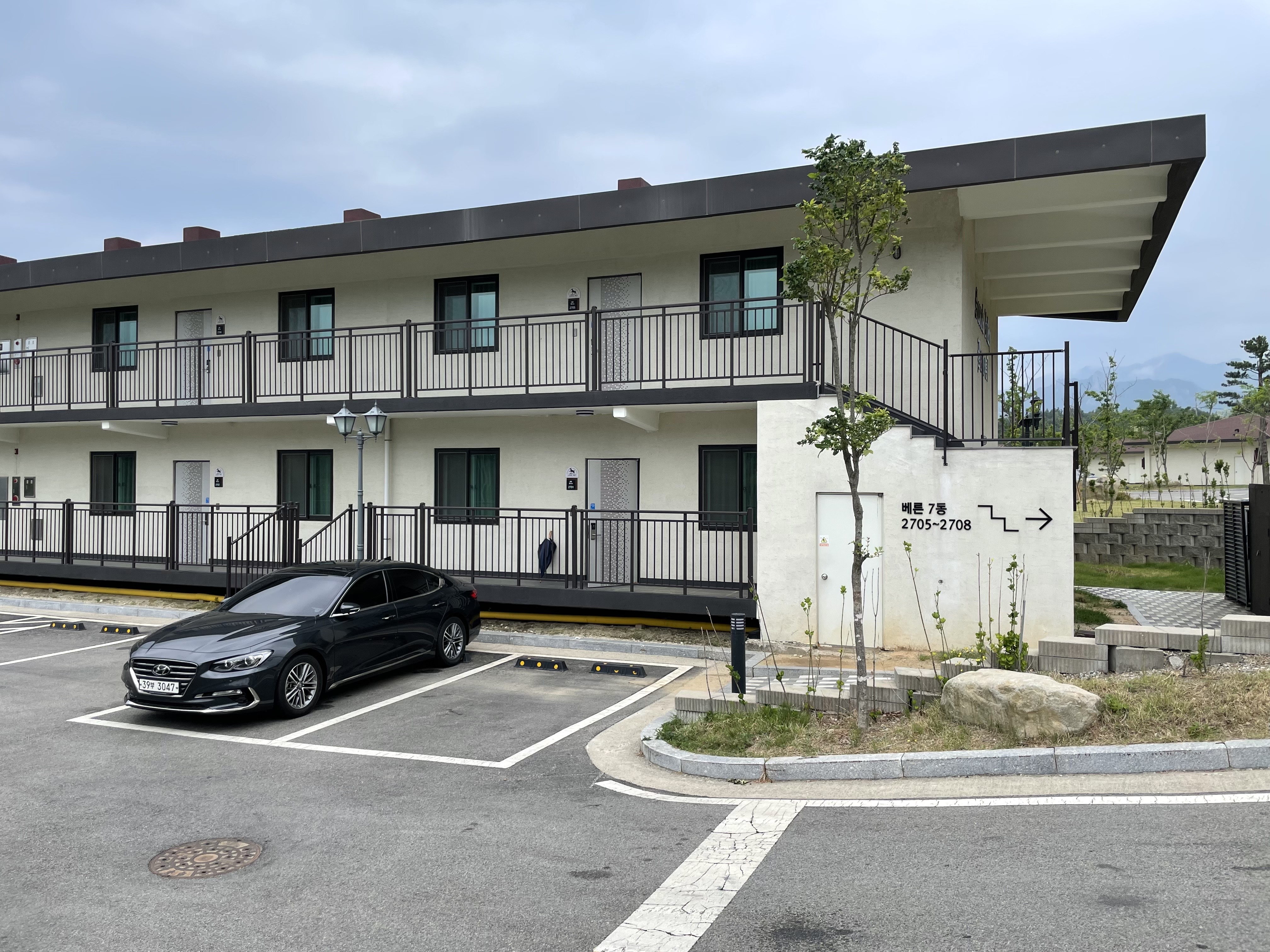 널찍널찍한 독채 건물들이 양 옆으로 늘어서 있고, 각 독채마다 주차 공간도 아주 널찍했다. 방의 크기에 따라서 구역이 나눠져 있었는데,