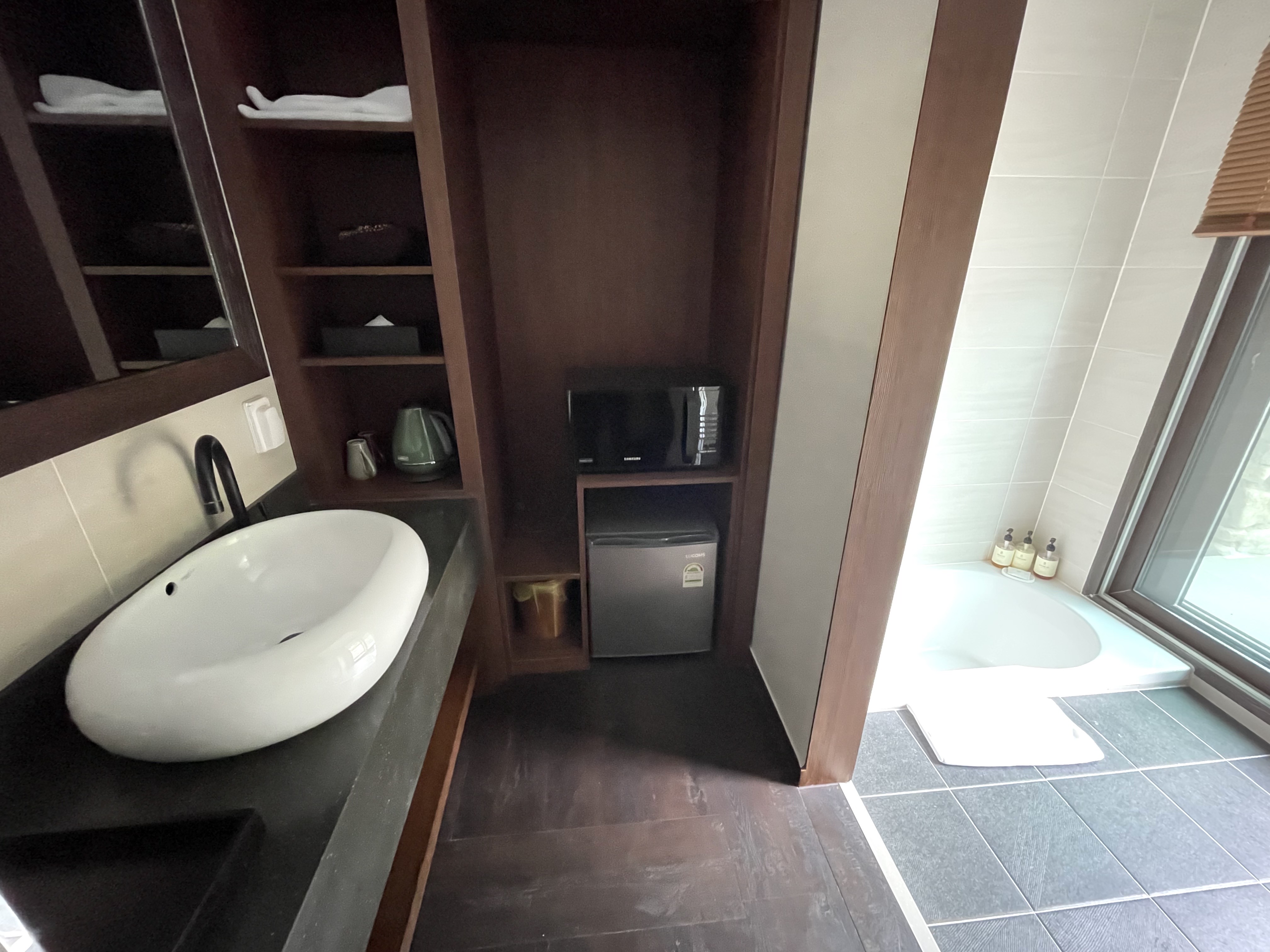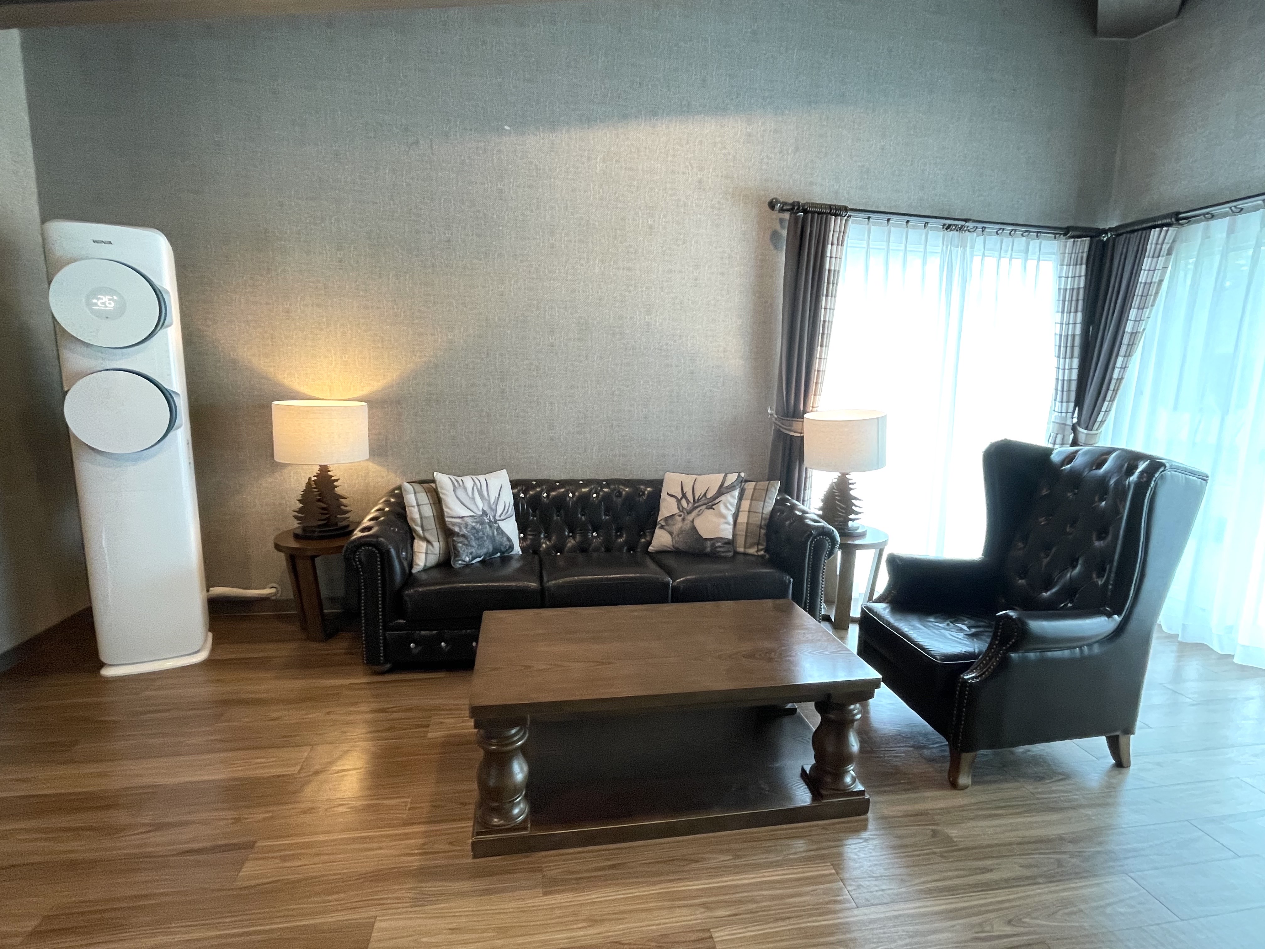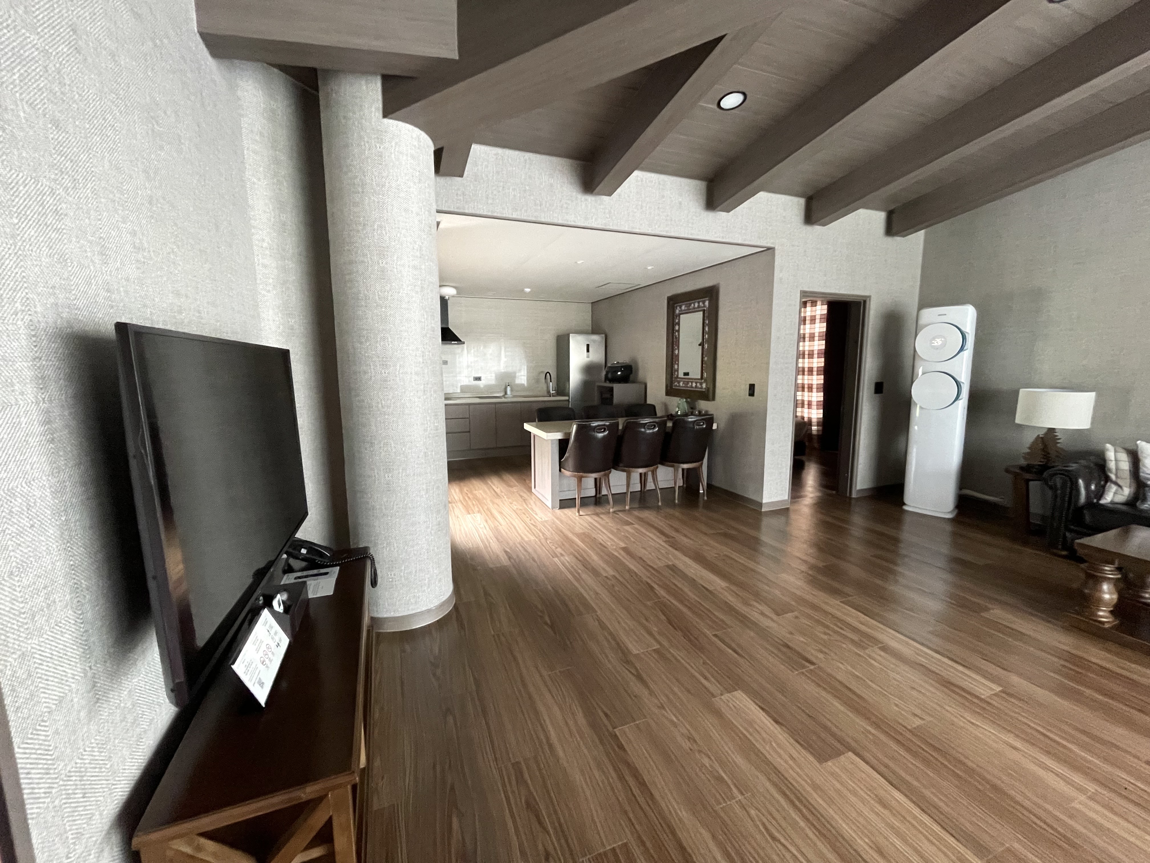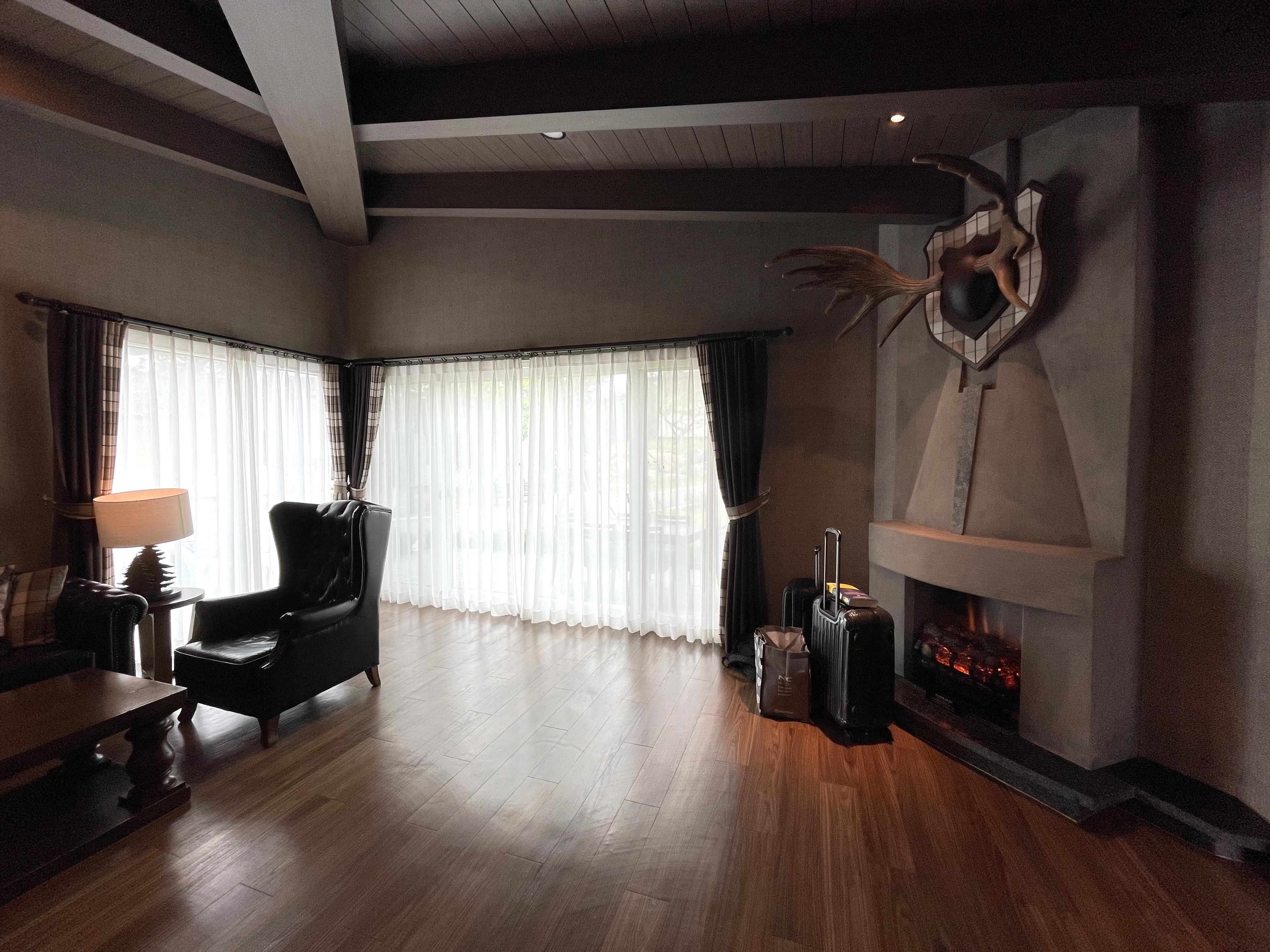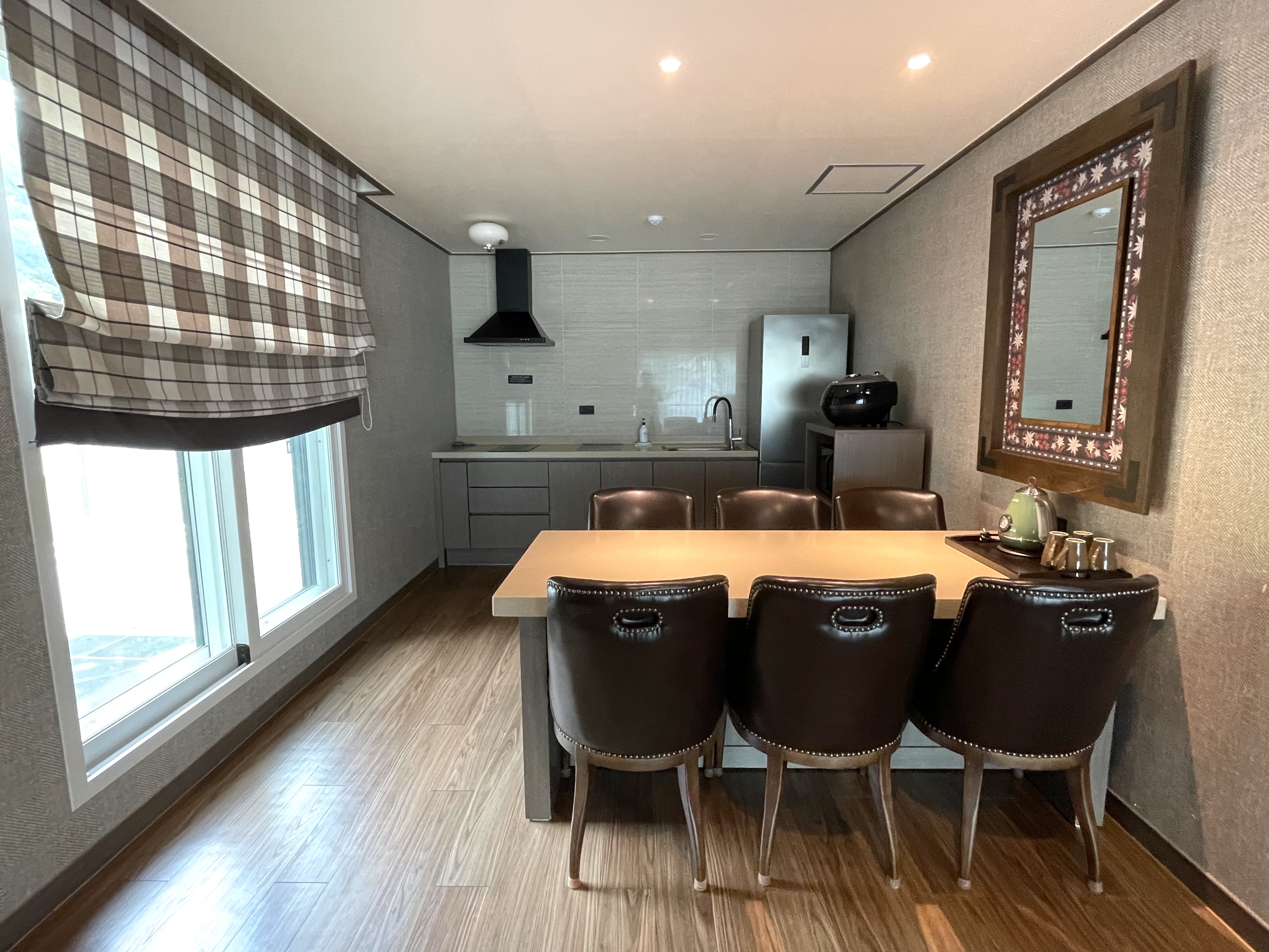 방에 들어서고는 다시 한 번 놀랐다. 넉넉한 크기에 한 번 놀라고, 부족함 없이 깔끔하고 고풍스러운 느낌에 놀라고, 구비된 각종 편의시설에 놀랐다. 이 방이 큰 사이즈 방이기는 하지만, 그래도... 한 2개 가족이 함께 생활하기에도 문제가 없을 것 같다.