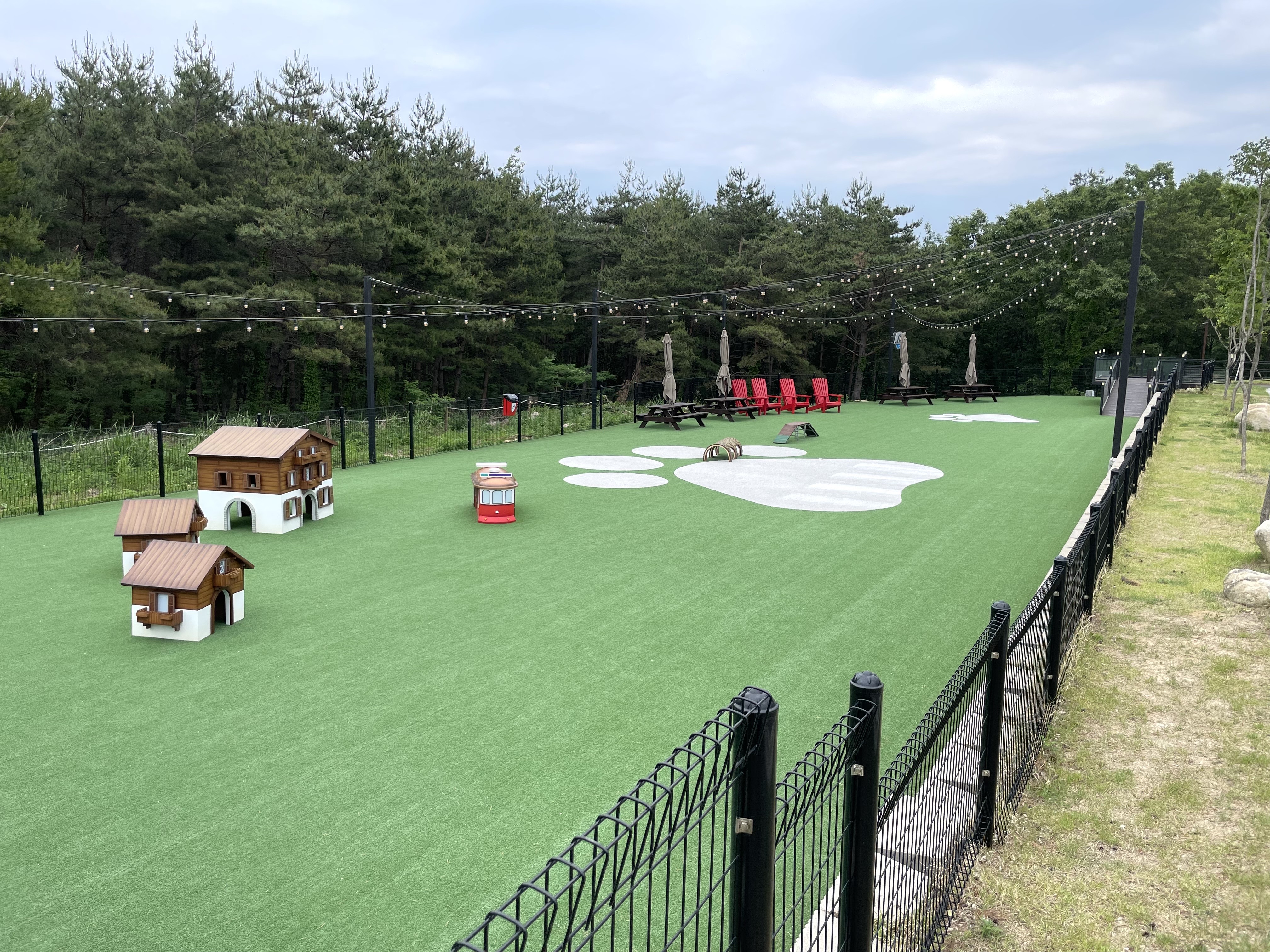 애견인은 아니지만, 동물을 데리고 리조트에 놀러 오기가 쉽지 않은 것으로 아는데... 함께 산책도 하고 맘껏 뛰어놀게 하기에도 참 좋을 것 같다. 게다가 바비큐 그릴도 있어서, 추가금을 약간 내면 그릴도 사용 가능하고 플래터도 주문 가능한 것 같다.