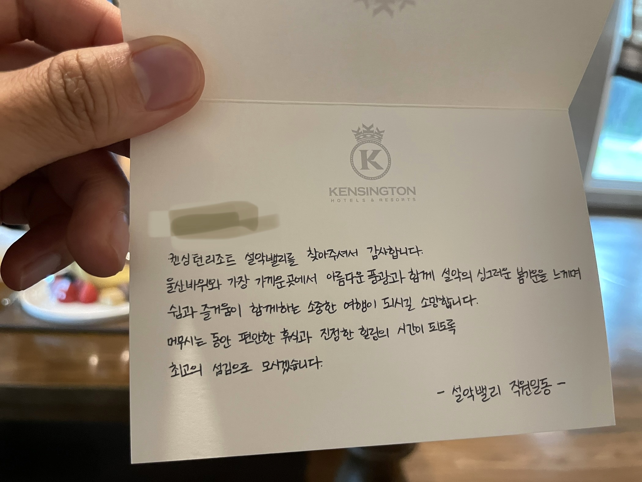 둘째날 숙소에 들어갔더니 깨끗하게 청소되어 있던 것은 물론 웰컴 과일과 이런 손편지까지 ㅠ