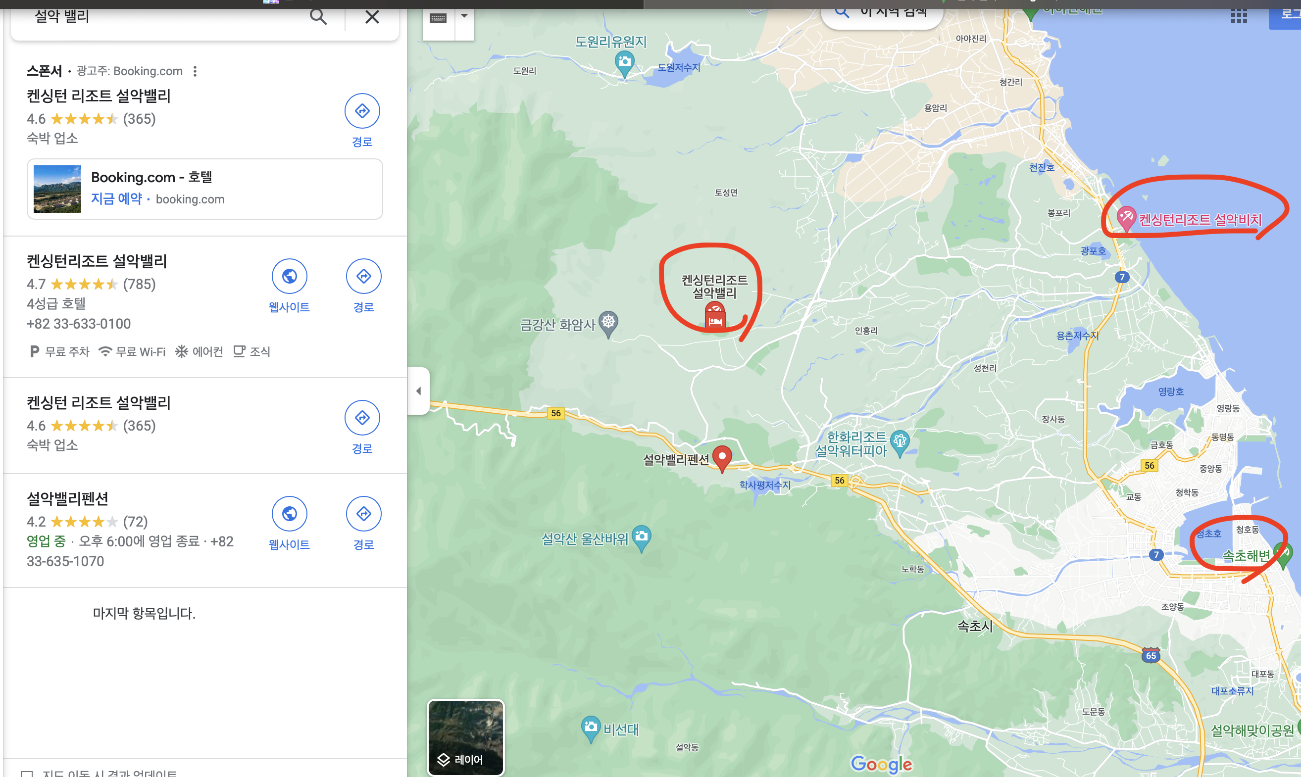 보통 그냥 '속초'에 있다고' 하는데.. 정확한 위치는 '강원도 고성군'이었다.