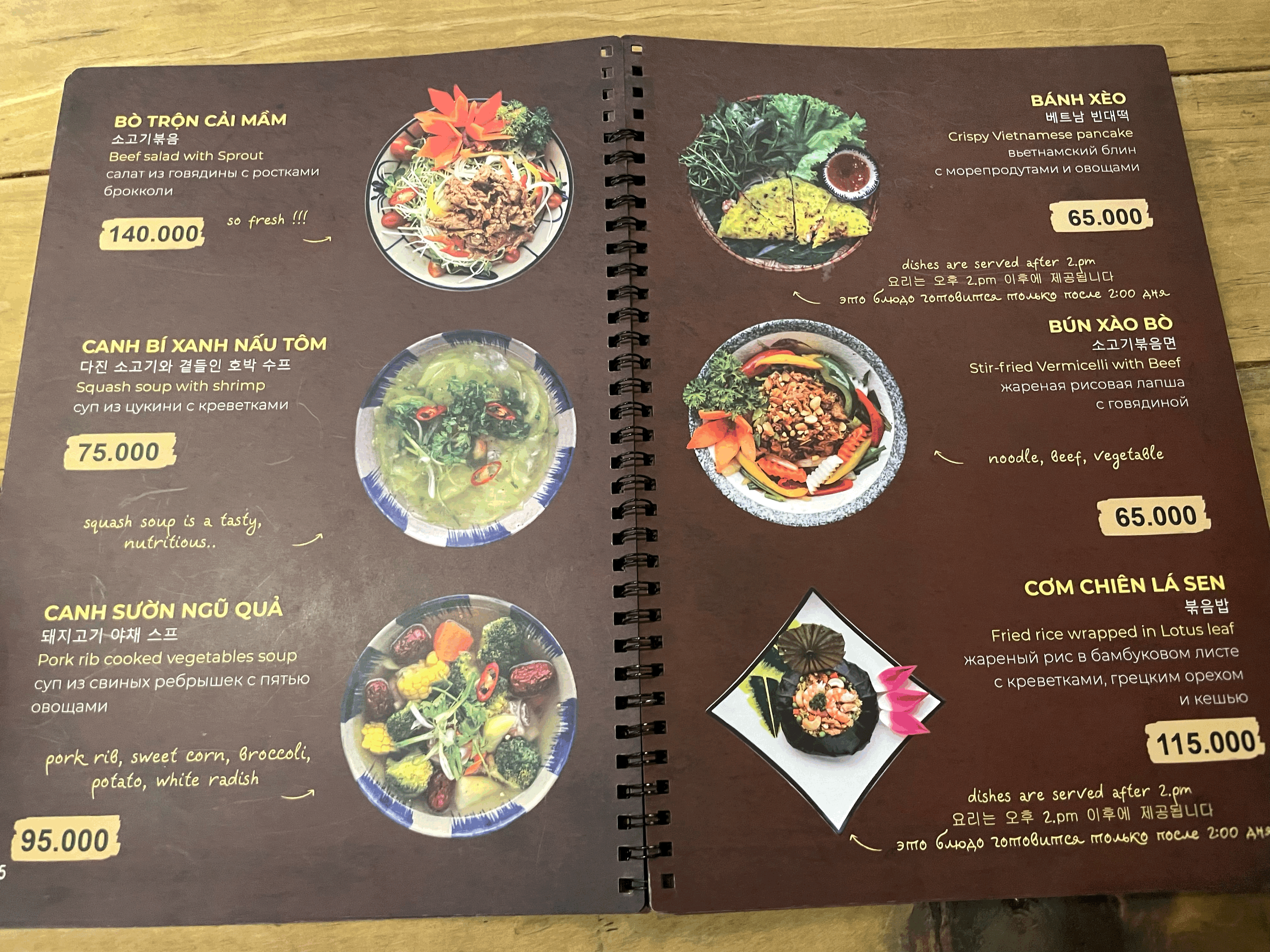 '반쎄오' 같은 경우도 먹기에 부담이 없어서 한국인에게 특히 인기가 많은 메뉴인데, 이곳의 가격이 65000 동인 것을 보고 놀랐다.