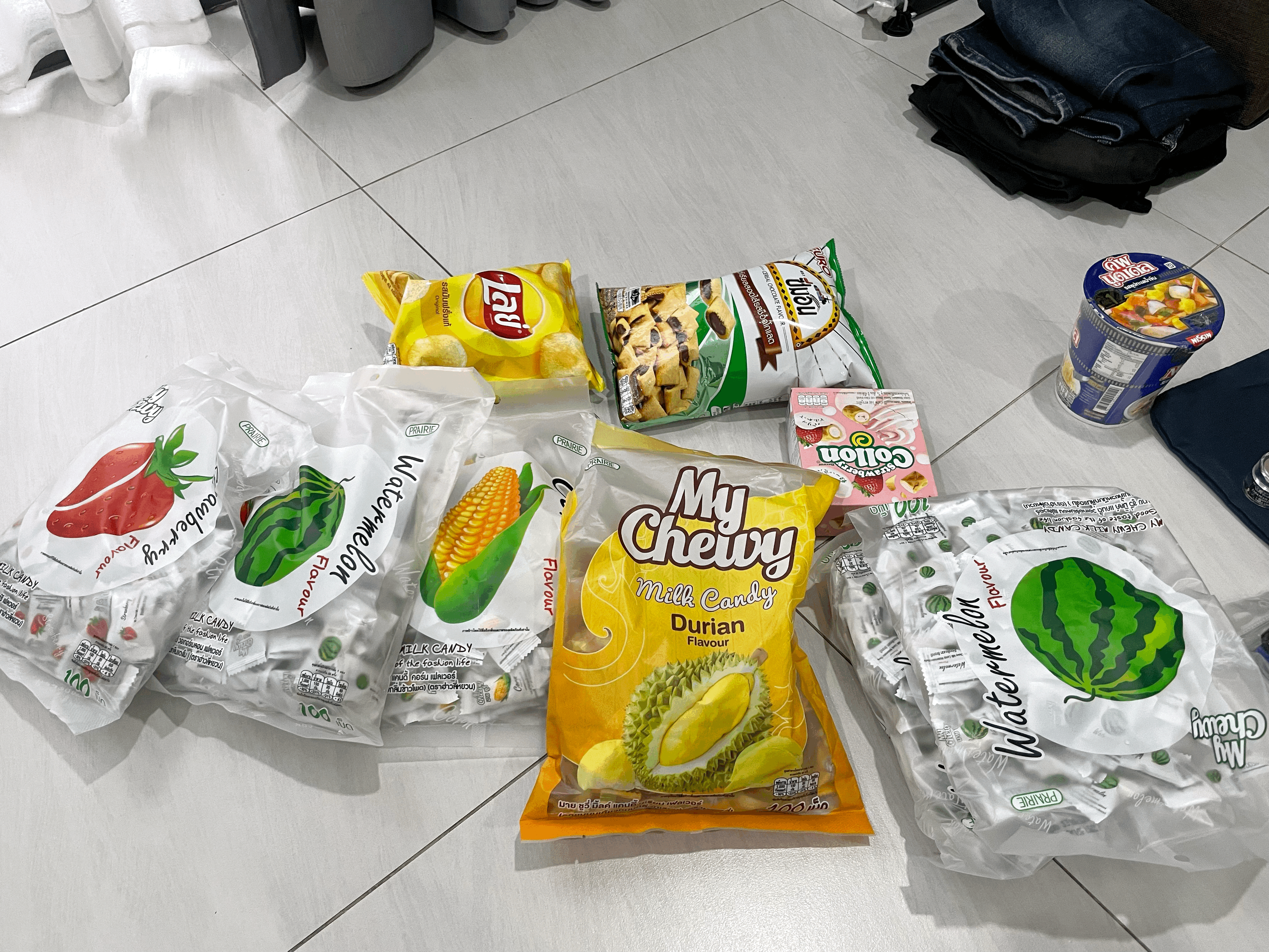 딱딱한 캔디가 아니라 츄잉 캔디인데... 옥수수 / 두리안 / 바나나 / 요구르트 / 수박 / 딸기 맛 등, 무척이나 다양한 맛이 있었다.