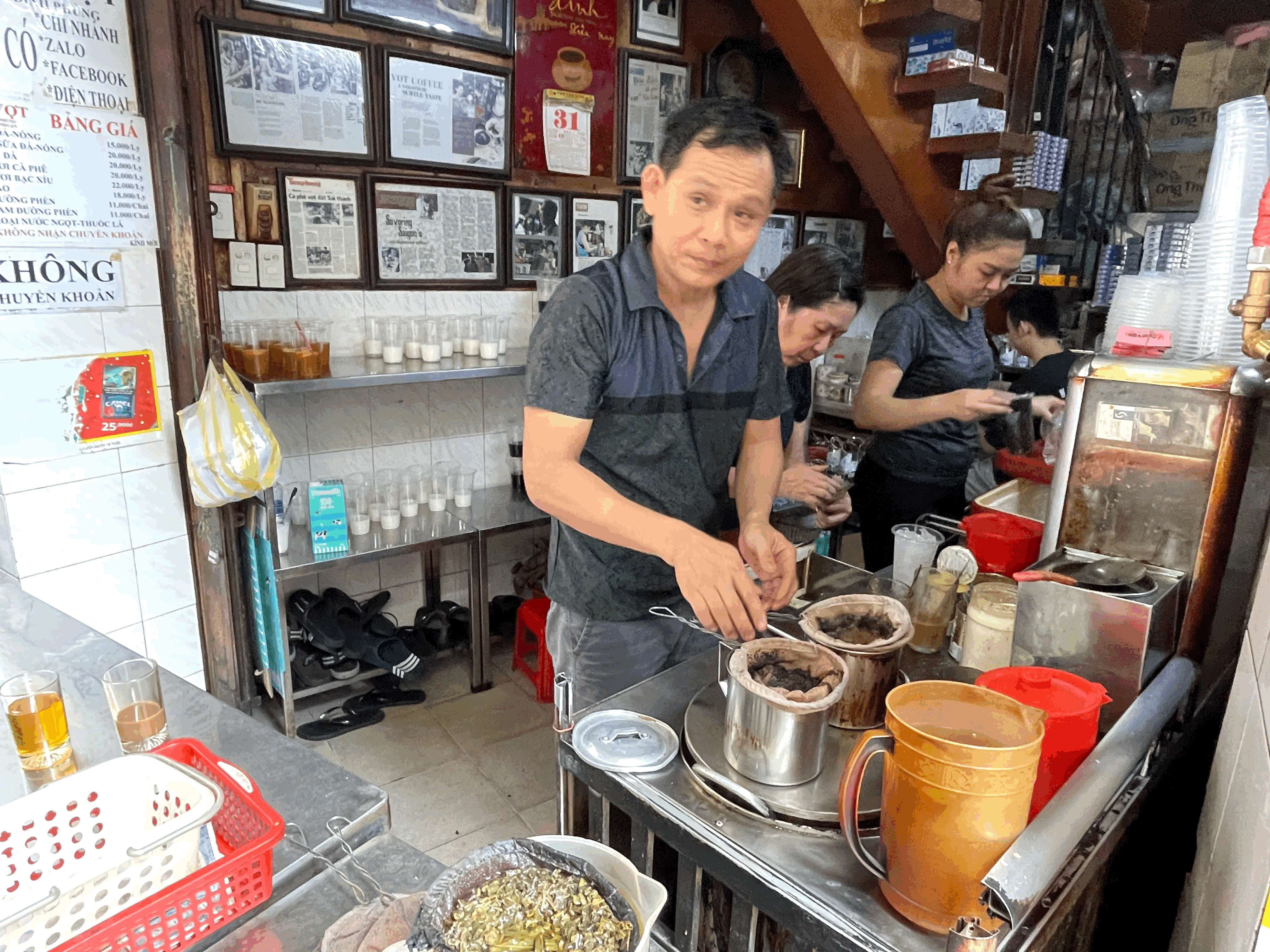 베트남 전통 방식의 '카페 다' 와 '카페 쓰어다'를 파는 곳이었는데, 그 우려내는 방식이 예전 방식 그대로였다.