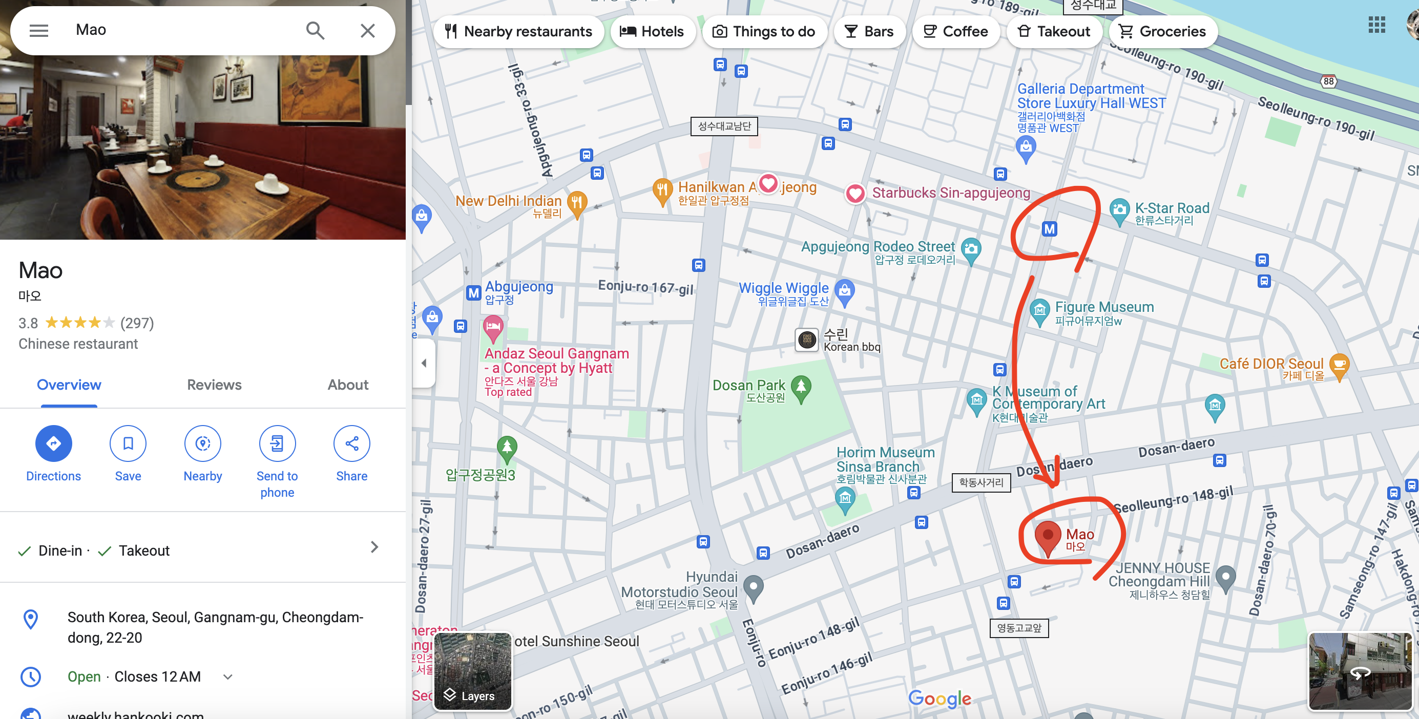하루는 압구정 로데오에서 만나기로 하였는데... 중식당으로 그 장소를 정했다고 연락받았다.