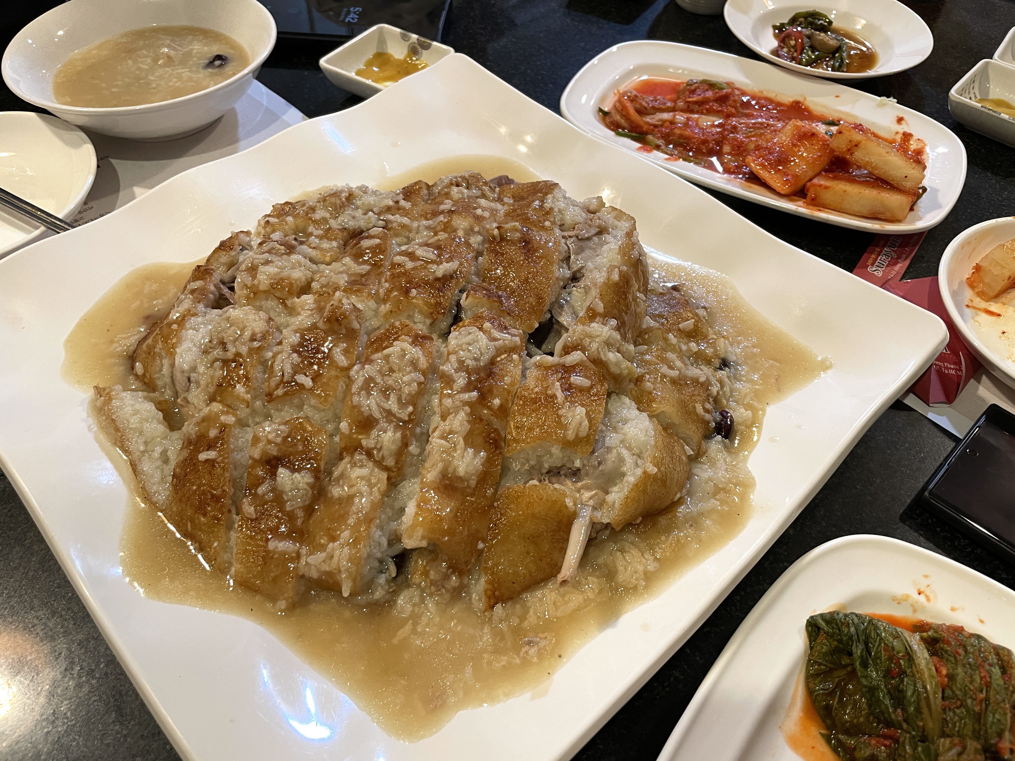오리 백숙과 오리 누룽지인가 하는 메뉴가 주 메뉴였지만 그 이외에도 닭죽과 여러 메뉴들 또한 주문을 했었는데, 아무래도 오리 메뉴들이 제일이었다. 닭죽은... 개인적으로 좋아하는 메뉴여서 기준치가 높아서 그런지 몰라도, 생각보다 별로였다. 다른 분들의 평도 비슷했던 것으로 보아, '오리집'에서는 '오리 요리'를 시켜 먹는 것으로...