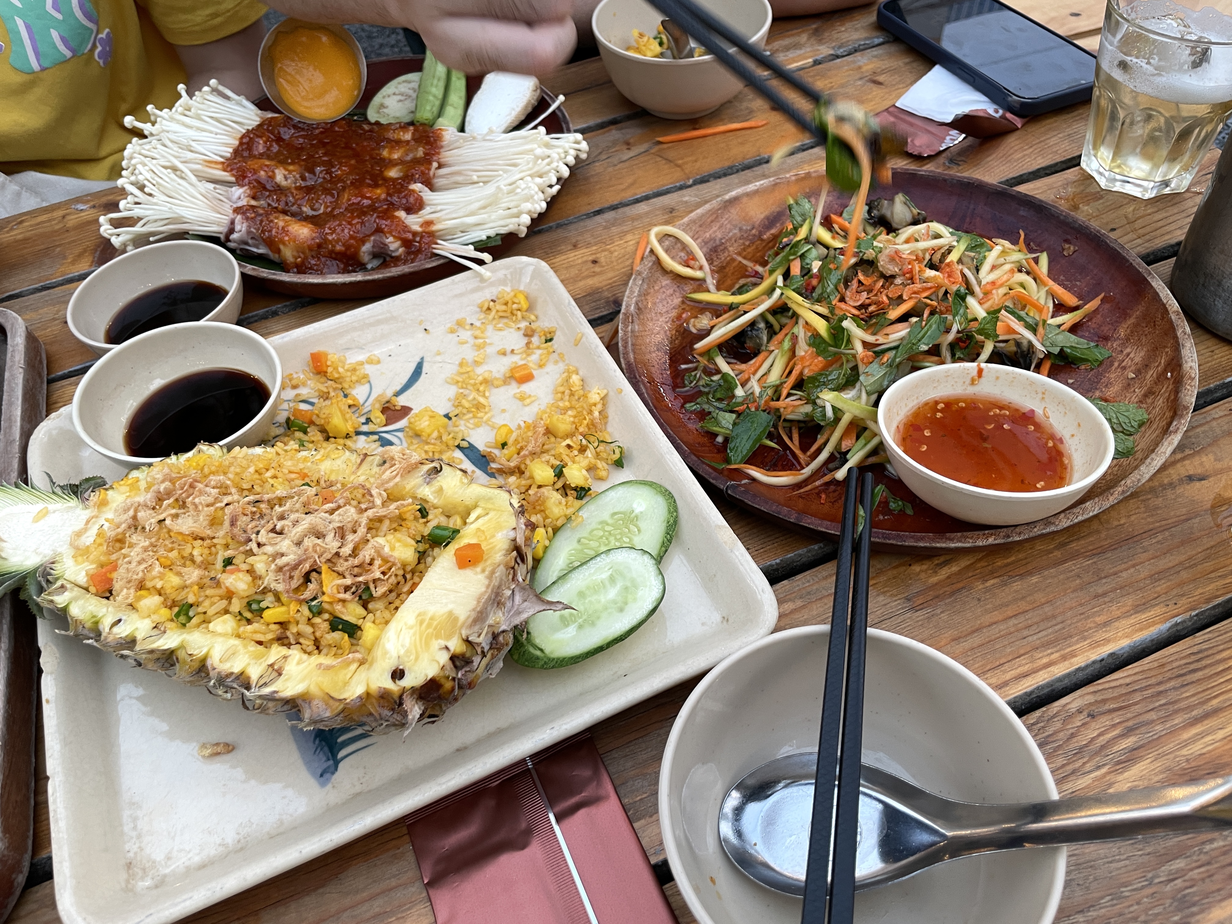 파인애플 볶음밥이나 파파야 샐러드 등도 먹을 만하다. ( 파인애플 볶음밥 위의 '짜봉'은 걷어내고 먹는 편. 말린 돼지고기에 간이 좀 들어가 있는 것을 '짜봉'이라고 한다 )
