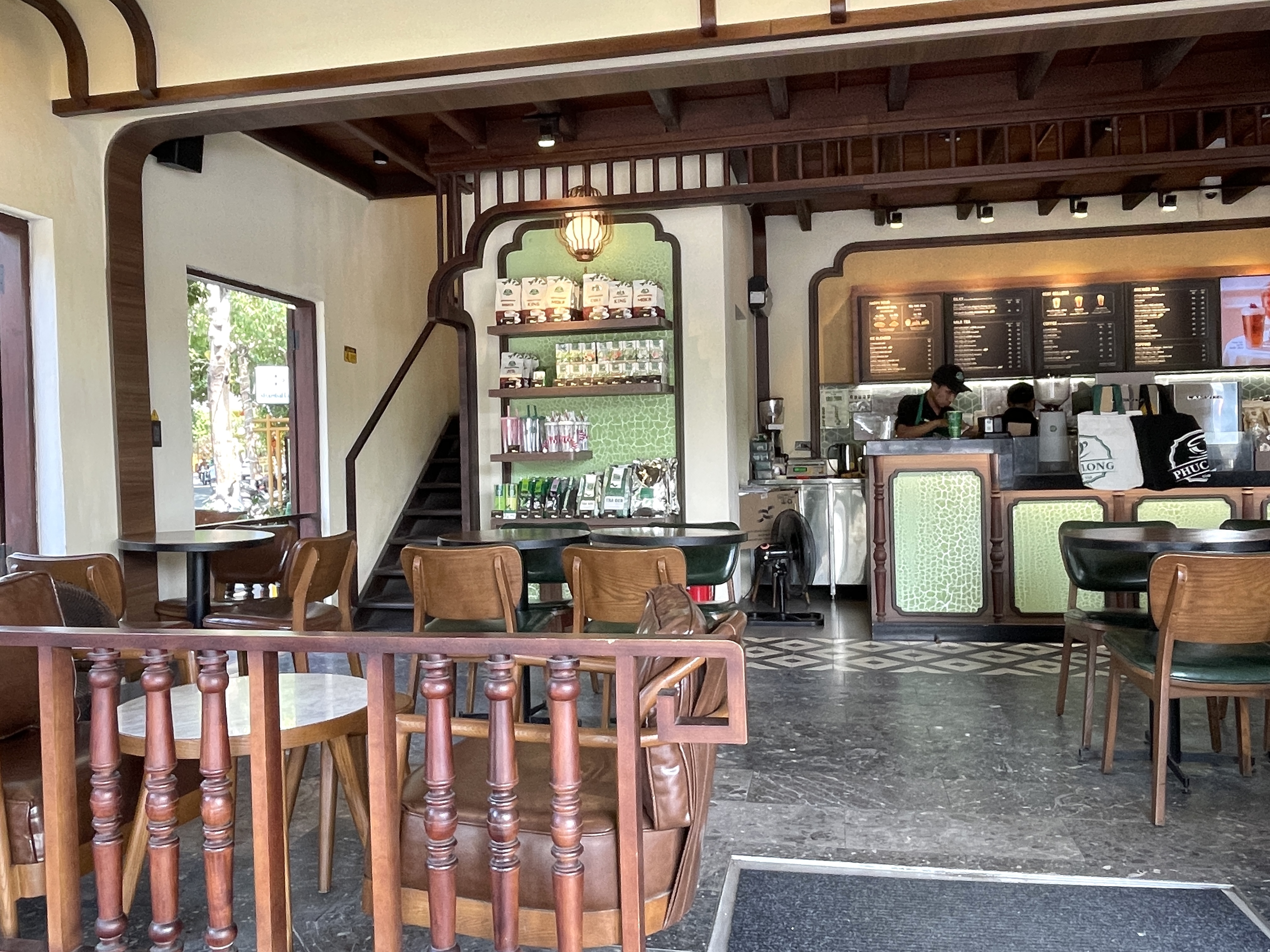그런데 이곳의 푹롱푹롱 카페는 약간 특이하다. 보통은 오리엔탈 요소와 모던 요소가 절묘하게 어우러진 인테리어가 푹롱의 방식인데, 이곳은 호이안 올드타운의 양식을 그대로 따랐다. 이 올드타운 지역이 규제가 있기에 그랬겠지만서도, 올드타운 지역과 조화되는 인테리어가 인상 깊었다. 인사동에 있는 '한글 스타벅스 간판'을 보는 느낌이랄까. 혹은 '스타벅스 경동 1960점'의 느낌으로 다가온다.